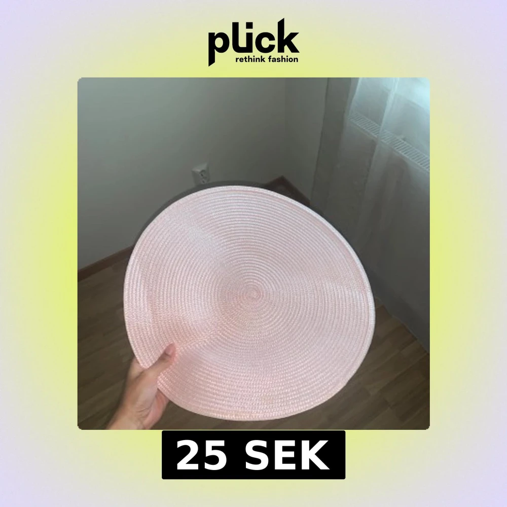 Säljer två rosa bordstabletter i flätat material. Perfekta för att ge ditt bord en elegant touch. De är runda och har en subtil textur som ger en fin detalj till dukningen.