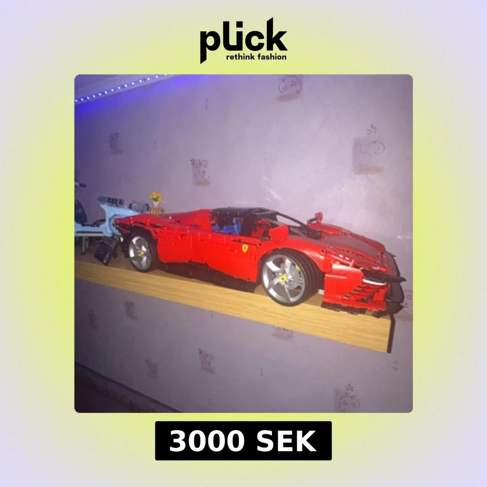 Säljer en detaljerad röd LEGO Ferrari, Bilen har öppningsbara dörrar, synliga motor- och interiördetaljer samt silverfärgade fälgar. Perfekt för bilentusiaster och LEGO-samlare.