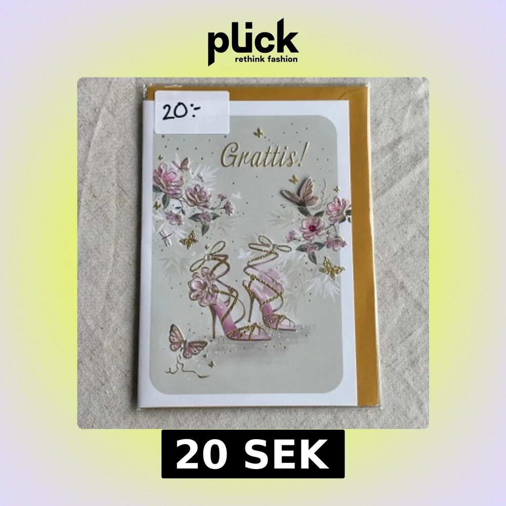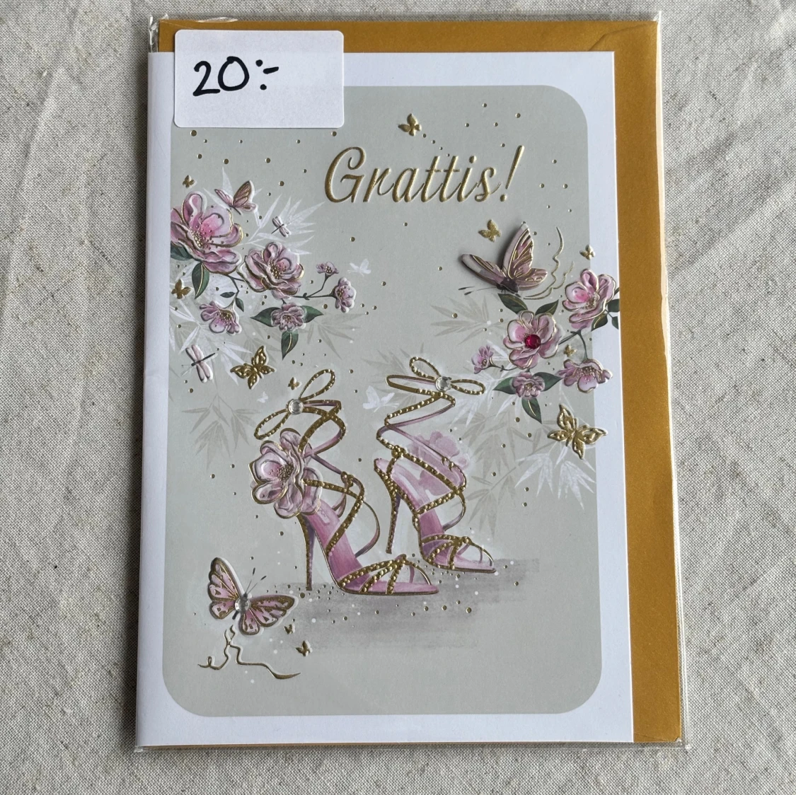 Snyggt grattis kort med detaljer. Medföljer kuvert samt den är kvar i sin ursprungliga förpackning. Insidan består av helt vita blad så plats för mycket text