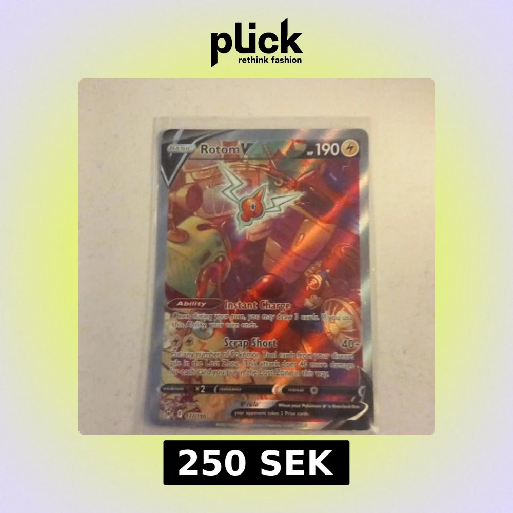Rotom V är ett coolt och färgstarkt Pokémon-kort med unika förmågor som Instant Charge och Scrap Short. Perfekt för dig som gillar att samla och spela Pokémon TCG! Kortet har en glittrande finish och passar både samlare och spelare som vill boosta sin lek.