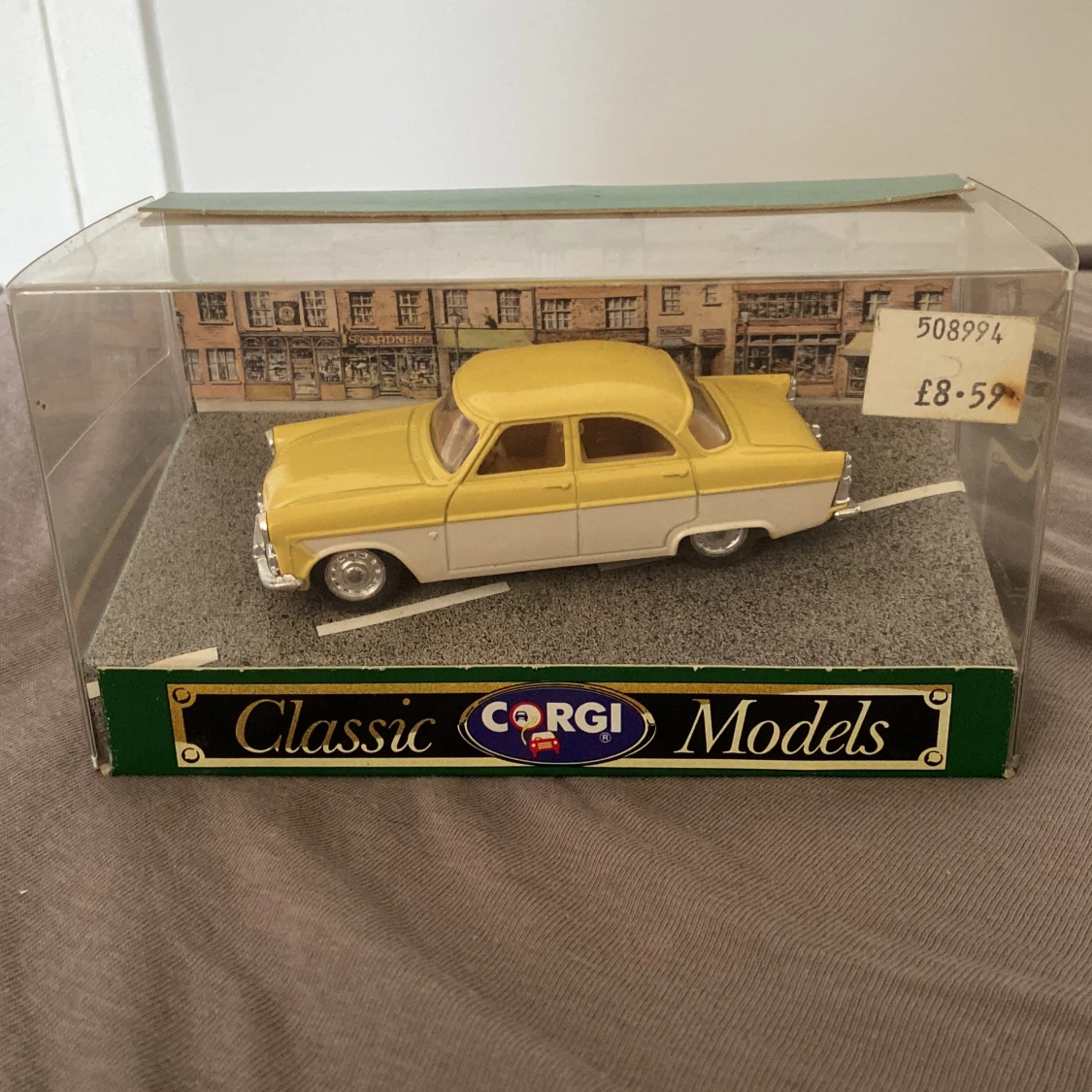Upptäck en ikonisk Ford Zodiac Saloon i snyggt gult och vitt! Denna Corgi Classic Models-bil är perfekt för dig som gillar retro, samlarprylar och coola bilar. Ett måste för bilentusiaster och unga vuxna som vill ha något unikt i hyllan.