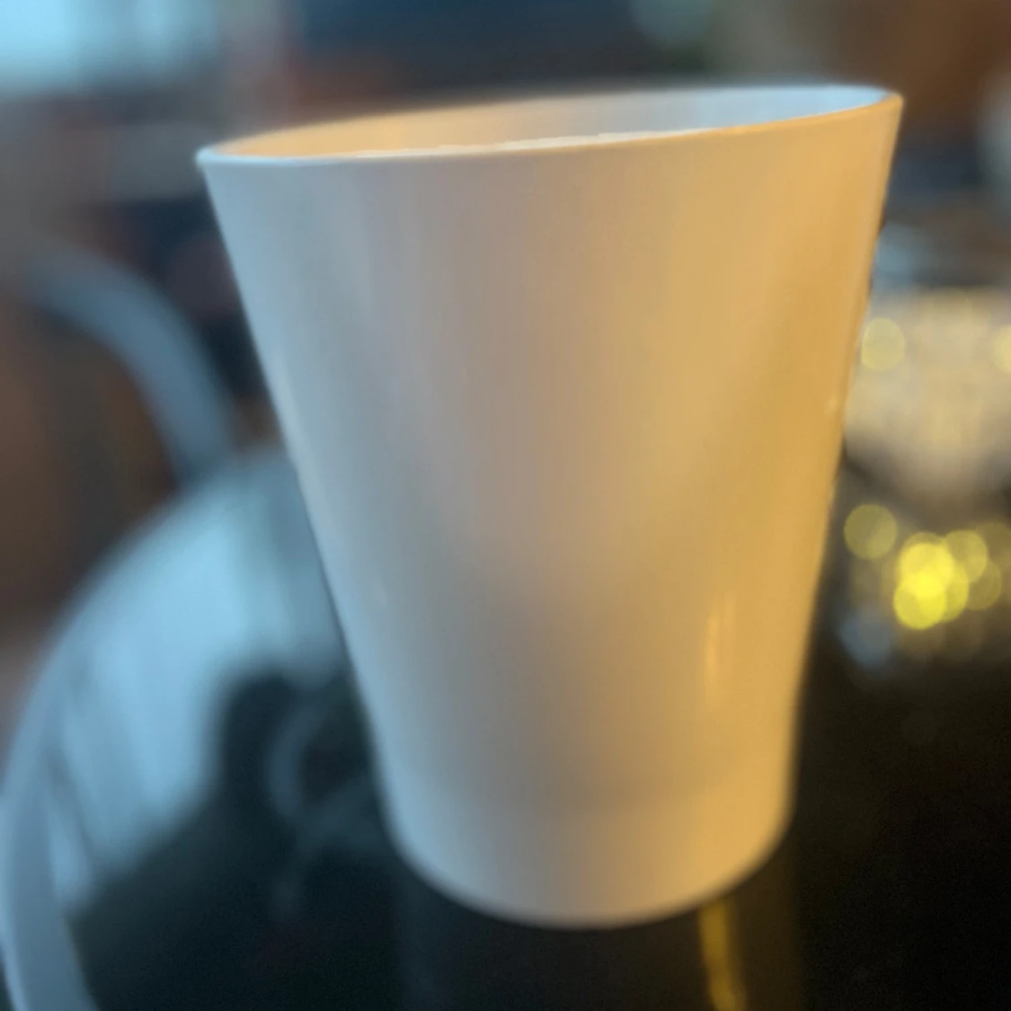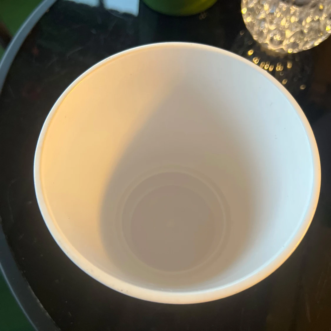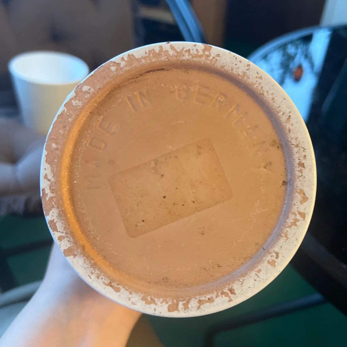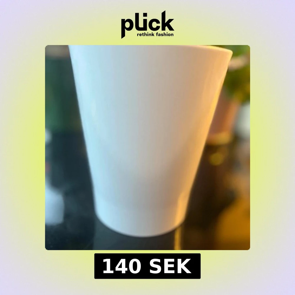 Bilderna visar en vit kruka, tillverkad i Tyskland. Det finn