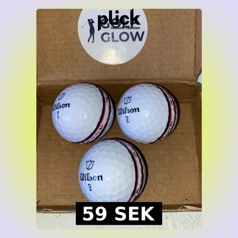 Tre vita golfbollar från Wilson med en tydlig röd och svart rand runt om. Bollarna har klassisk dimple-yta och är märkta med siffrorna 2 och 3. Perfekta för dig som vill ha extra synlighet på golfbanan.