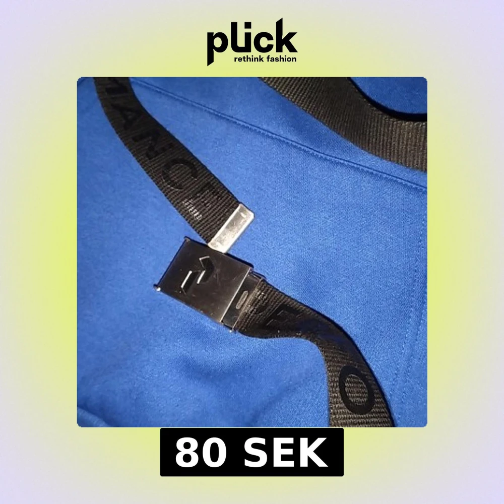 Säljer ett svart bälte i textil med ett stilrent metallspänne. Bältet har tryckt text längs bandet och spännet är i blank metall med en snygg detalj. Perfekt för att ge outfiten en sportig och modern touch.