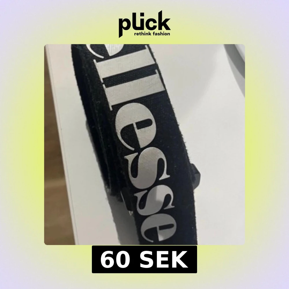 Snyggt svart bälte från Ellesse med stor vit logotyp längs bandet. Perfekt för att ge en sportig touch till din outfit. Bältet har en enkel design med en praktisk spänne.