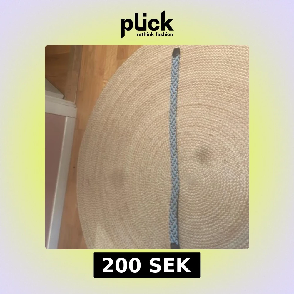 Säljer ett smalt flätat bälte i ljusblått med detaljer i mörkare färg vid ändarna. Perfekt för att ge en extra touch till jeans eller klänning. Bältet har en enkel och stilren design.