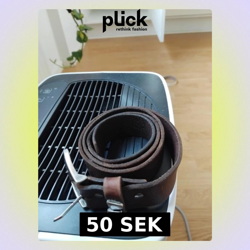 Säljer ett stilrent brunt bälte i äkta skinn med ett rejält metallspänne. Bältet har en klassisk design och är perfekt för att ge din outfit en cool och tidlös touch. Passar till jeans eller chinos och är lätt att matcha med olika stilar.
