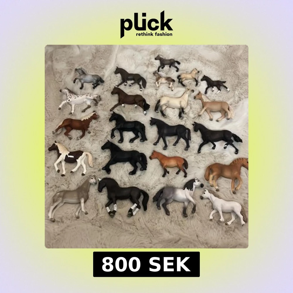 Upptäck en cool samling med 20+ realistiska hästfigurer i olika färger och raser! Perfekt för dig som älskar djur, samlar på modeller eller vill skapa egna äventyr. Inspirerar till lek, kreativitet och hästintresse – en unik chans för unga hästfantaster! Alla hästar tillsammans kostar 800 och styck 50 förutom fölen dom kostar 30. Tillbehören tillsammans kostar 100 kr om man vill köpa i styck så kostar allt 30.