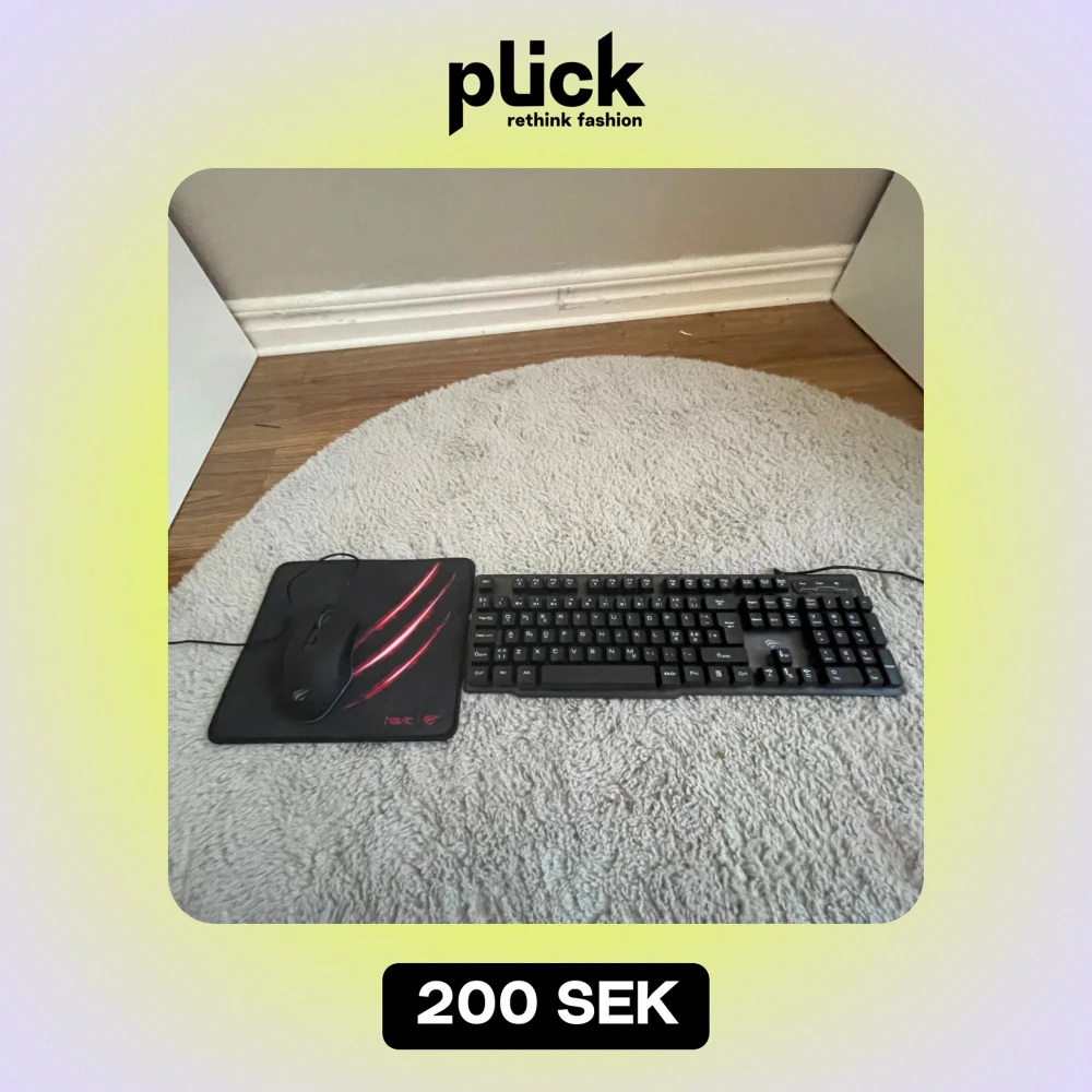 Säljer ett svart tangentbord och mus med en matchande musmatta. Tangentbordet har en klassisk layout med numerisk del och musen är ergonomiskt utformad för bekvämt spelande. Musmattan har ett coolt rött klo-mönster. Perfekt för gaming eller kontorsarbete!