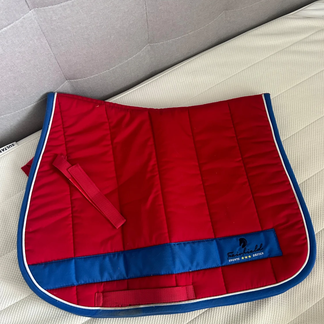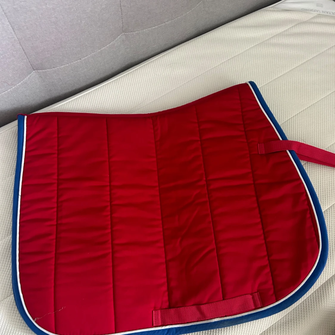 Ett rött/marinblått schabrak för ponny b/c