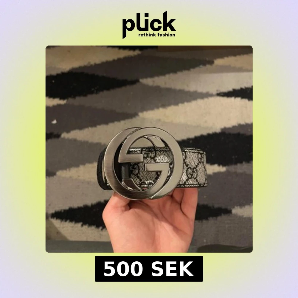 Snyggt bälte med klassiskt GG-mönster i svart och grått. Bältet har ett stort, rundat spänne i silverfärgad metall med dubbla G-loggan. Remmen är i skinn och mocka, med detaljer i svart läder. Perfekt för att lyfta vilken outfit som helst.