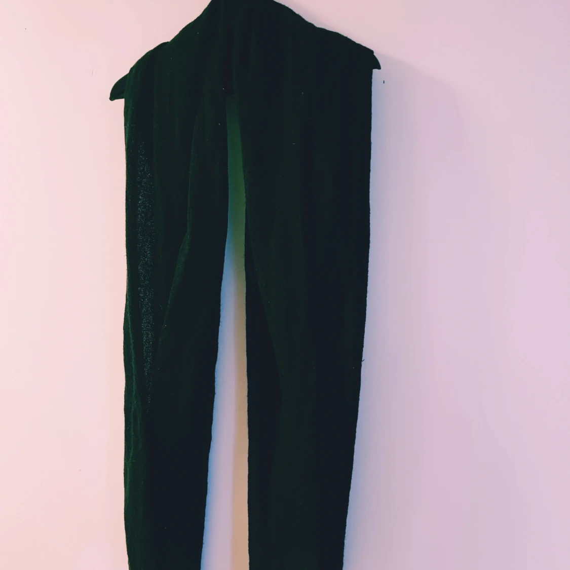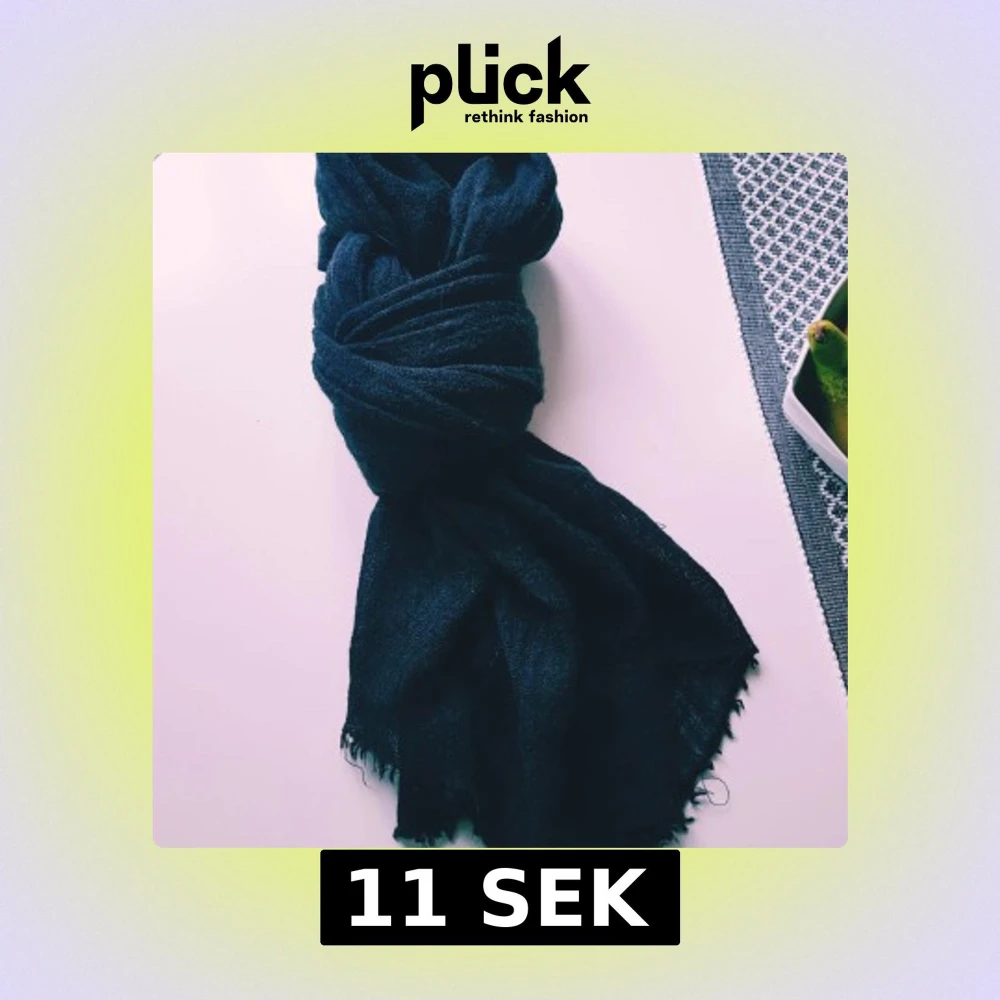 Enkel och stilren svart halsduk i mjuk ull. Halsduken är lång och har lätt fransade kanter, perfekt att vira flera varv runt halsen. Passar dig som gillar en klassisk look med en touch av mysfaktor. Små tråddragningar annars fint skick