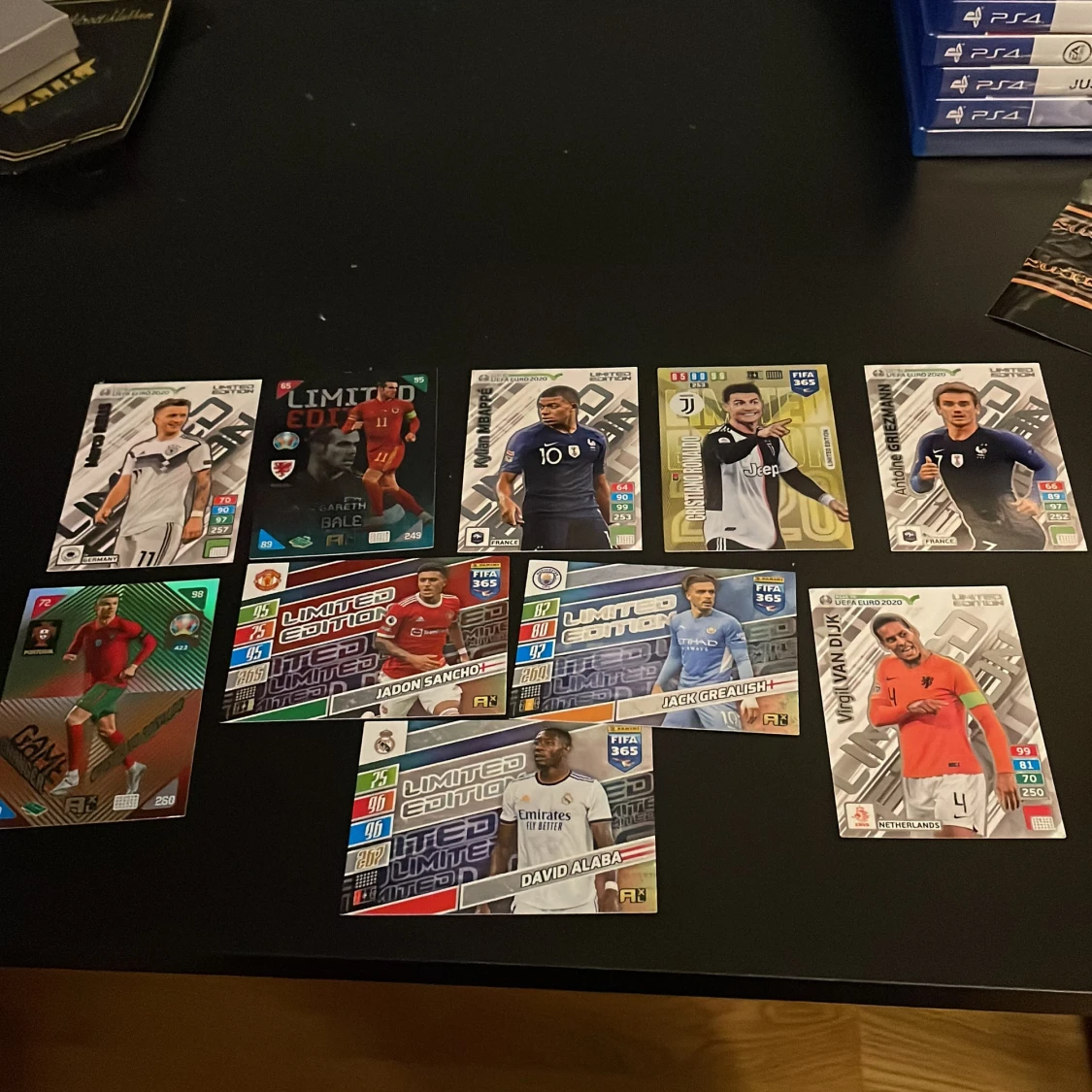 Samling av exklusiva FIFA 365 Limited Edition fotbollskort med stjärnor som Cristiano Ronaldo, Gareth Bale, Jadon Sancho och fler. Perfekt för unga fotbollsfans och samlare som vill ha de hetaste spelarna i sin kollektion!