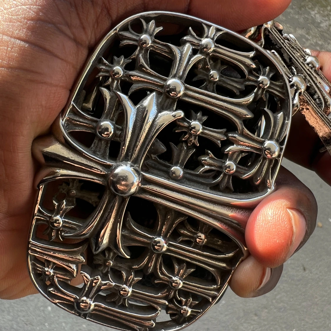 Mold and logo stamped by me and the buckle made out off stainless steel and is over 6 years since it been made and the length is 106/108cm long ( not from chrome or have an associations with them )