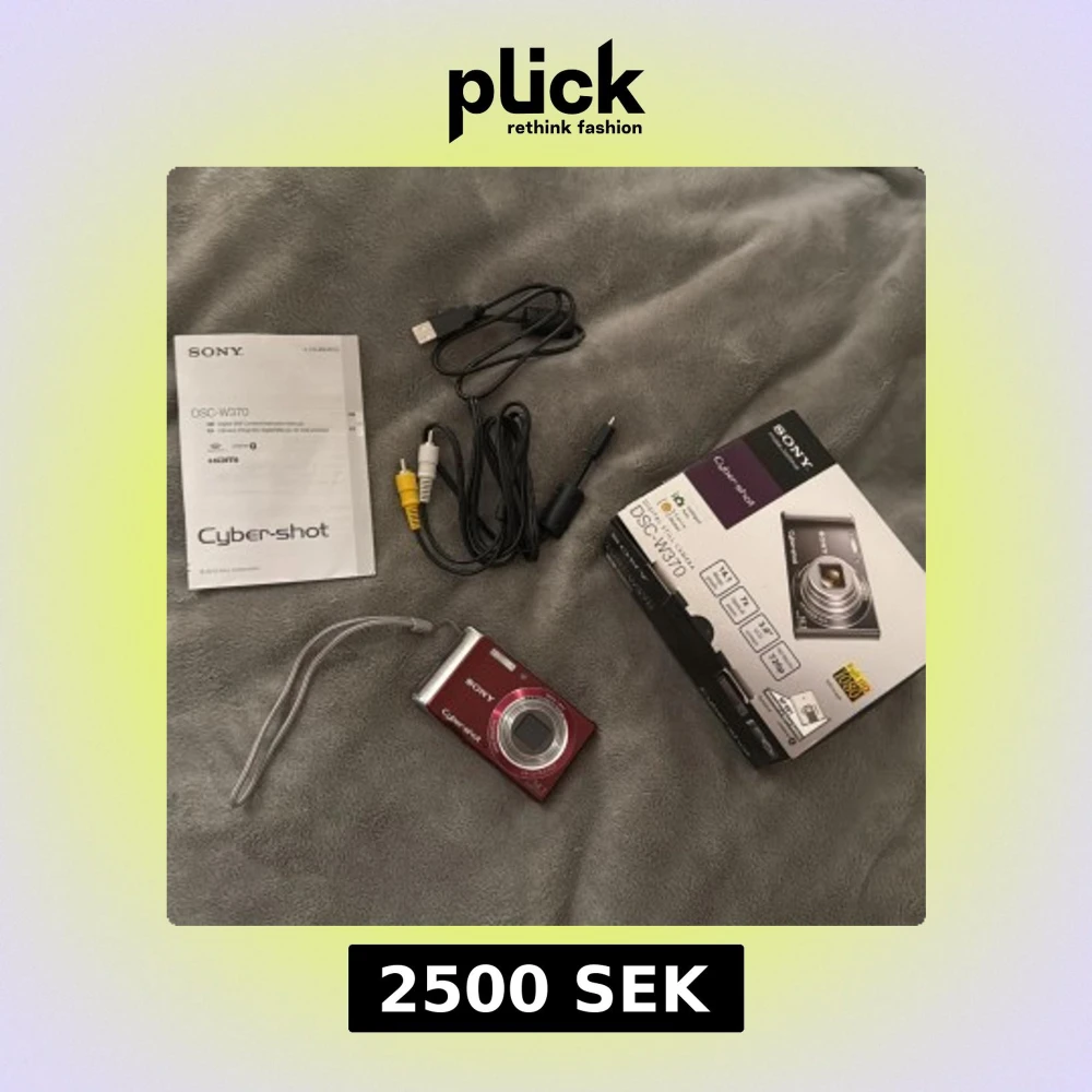 Säljer en röd vintage Sony Cyber-shot DSC-W370 digitalkamera med 14,1 megapixlar och 7x optisk zoom. Kameran har en stor LCD-skärm, levereras med originalkartong, manual, laddare, AV-kabel, 2GB SD-kort och batteri. Perfekt för dig som vill ha en smidig och snygg kompaktkamera.
