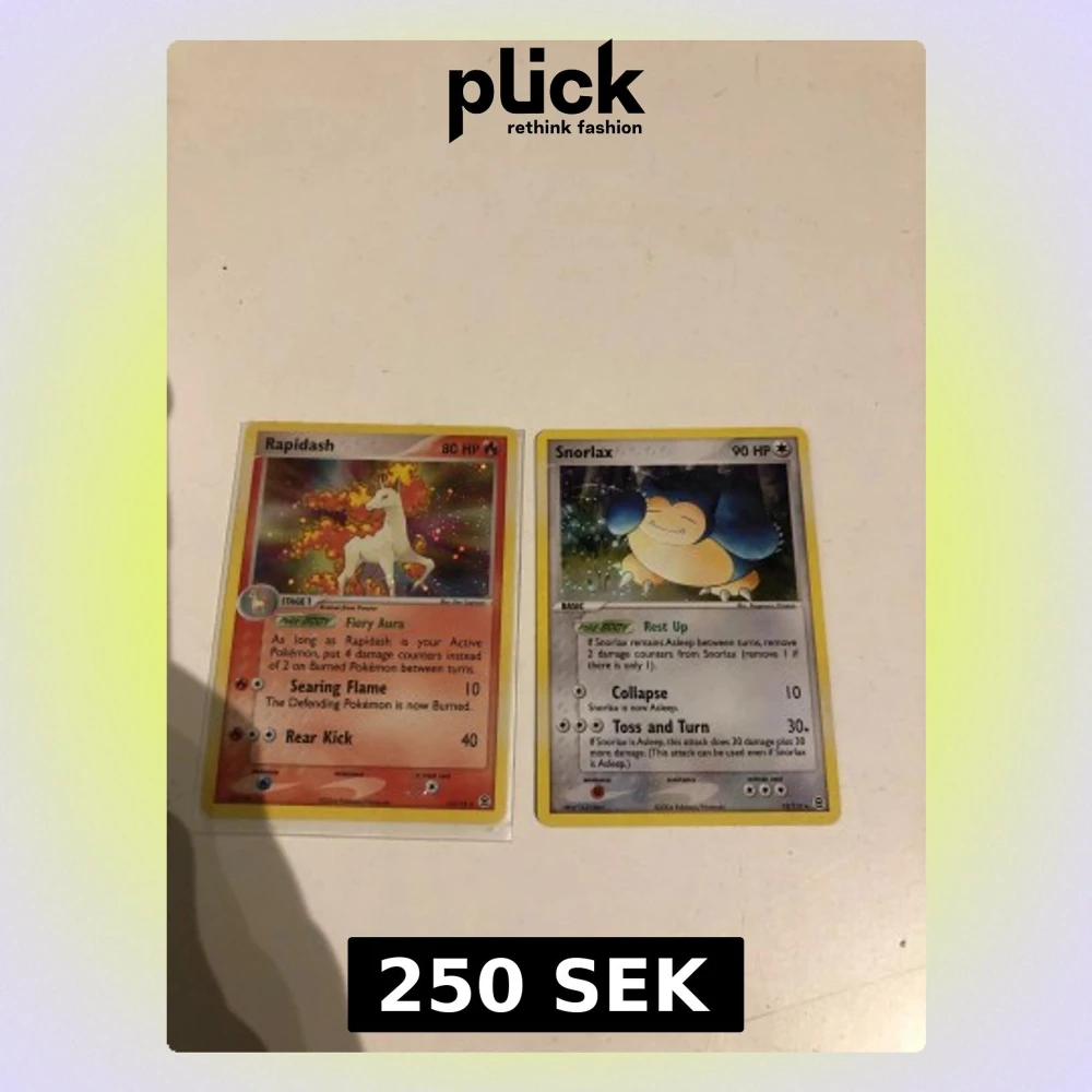 Två coola Pokémonkort med Rapidash och Snorlax från 2004! Perfekt för dig som samlar eller vill spela med klassiska karaktärer. Rapidash har eldiga attacker och Snorlax är supertuff med sin sömnförmåga. Färgglada och nostalgiska kort för alla Pokémonfans!
