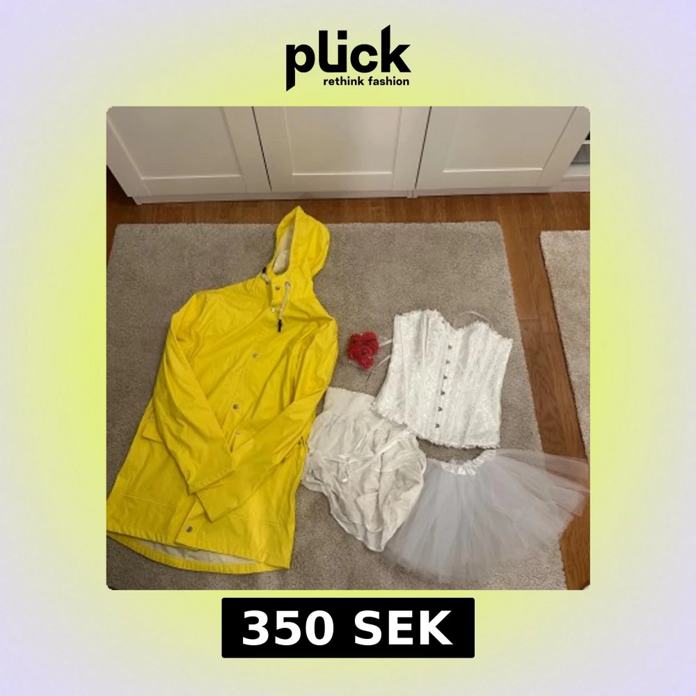 Kostym till it och jacka till barnet med röd ballong. Man får med: -Gul regnjacka, den är använd med i fint skick. Herr storlek+dubbel storlek (S/M) från lager157. -Vit korsett, den är helt ny från shein. Storlek S. -vit/creame färgad kjol från lager157 använd men fint skick, storlek 160= ca XS. -Puffig kjol, liten i storlek, helt ny från shein. -plast blommor, som man kan ha som knappar så som pennywise har. Vid frågor så är det bara att skriva!