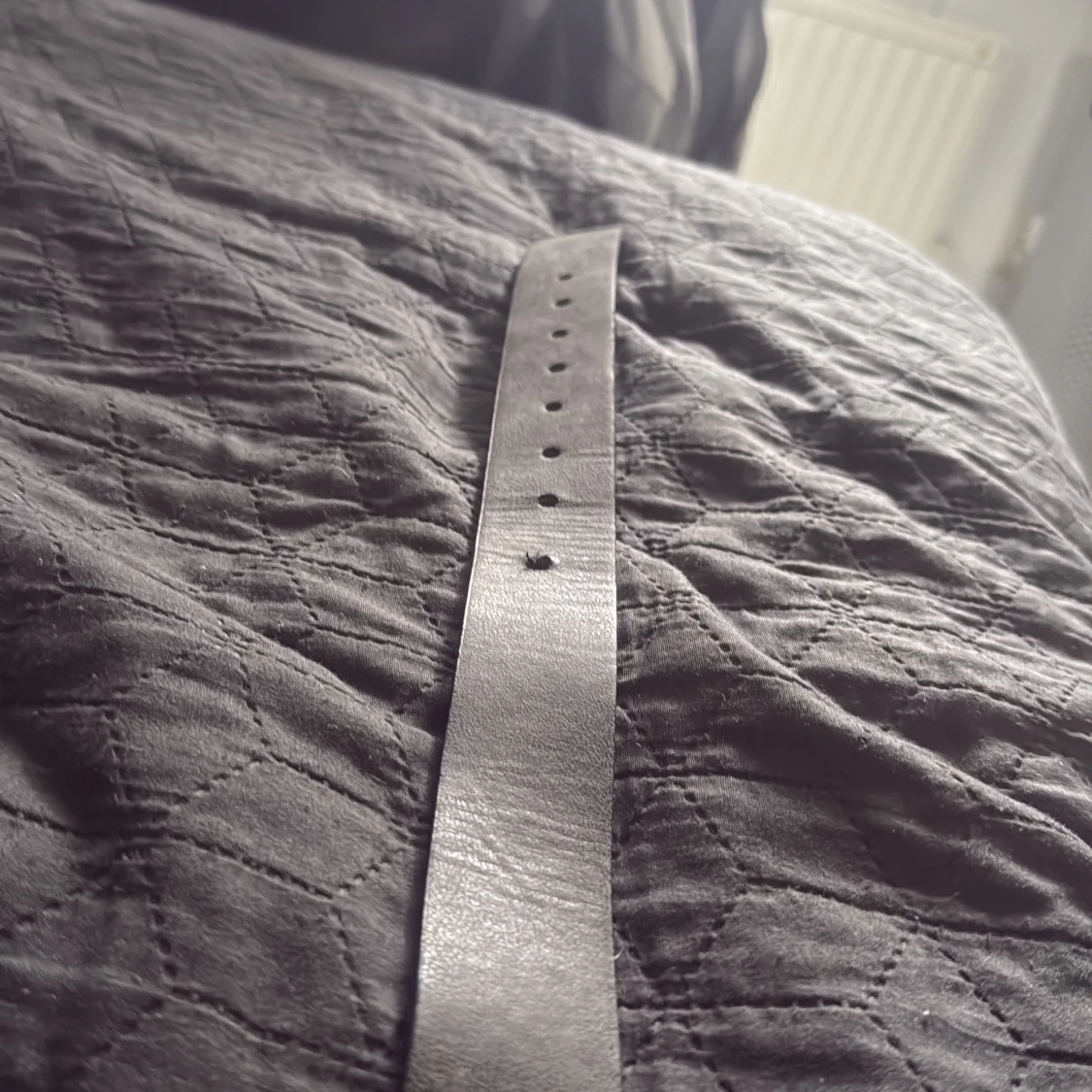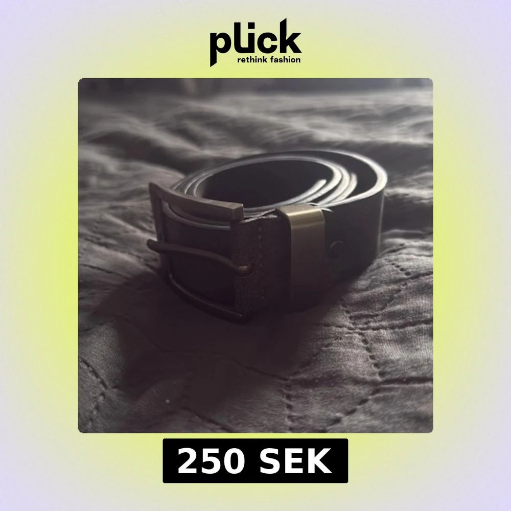 Snyggt svart bälte i skinn med klassisk, matt metallspänne där det står 'JEANS The New Fashion'. Bältet har en stilren och rak form med flera hål för justering. Perfekt för att ge jeansen en cool touch.