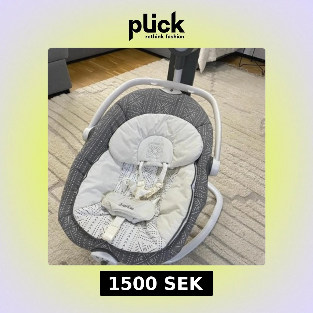 Joie Sansa 2-in-1 babysitter och gunga i grått och vitt mönster. Elektronisk styrpanel med flera funktioner, säkerhetssele och mjuk , Perfekt för småbarn med komfort och säkerhet.