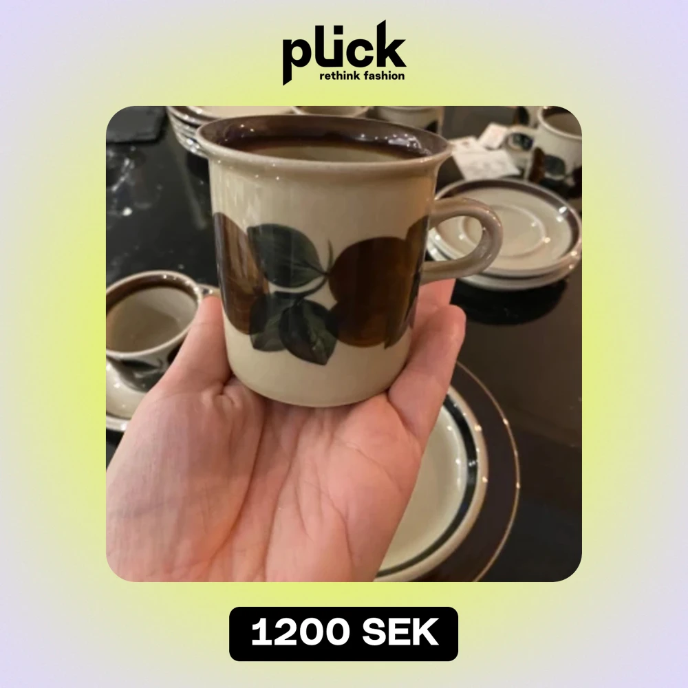 5 st koppar med 7 st assietter från arabia Ruija . Retro