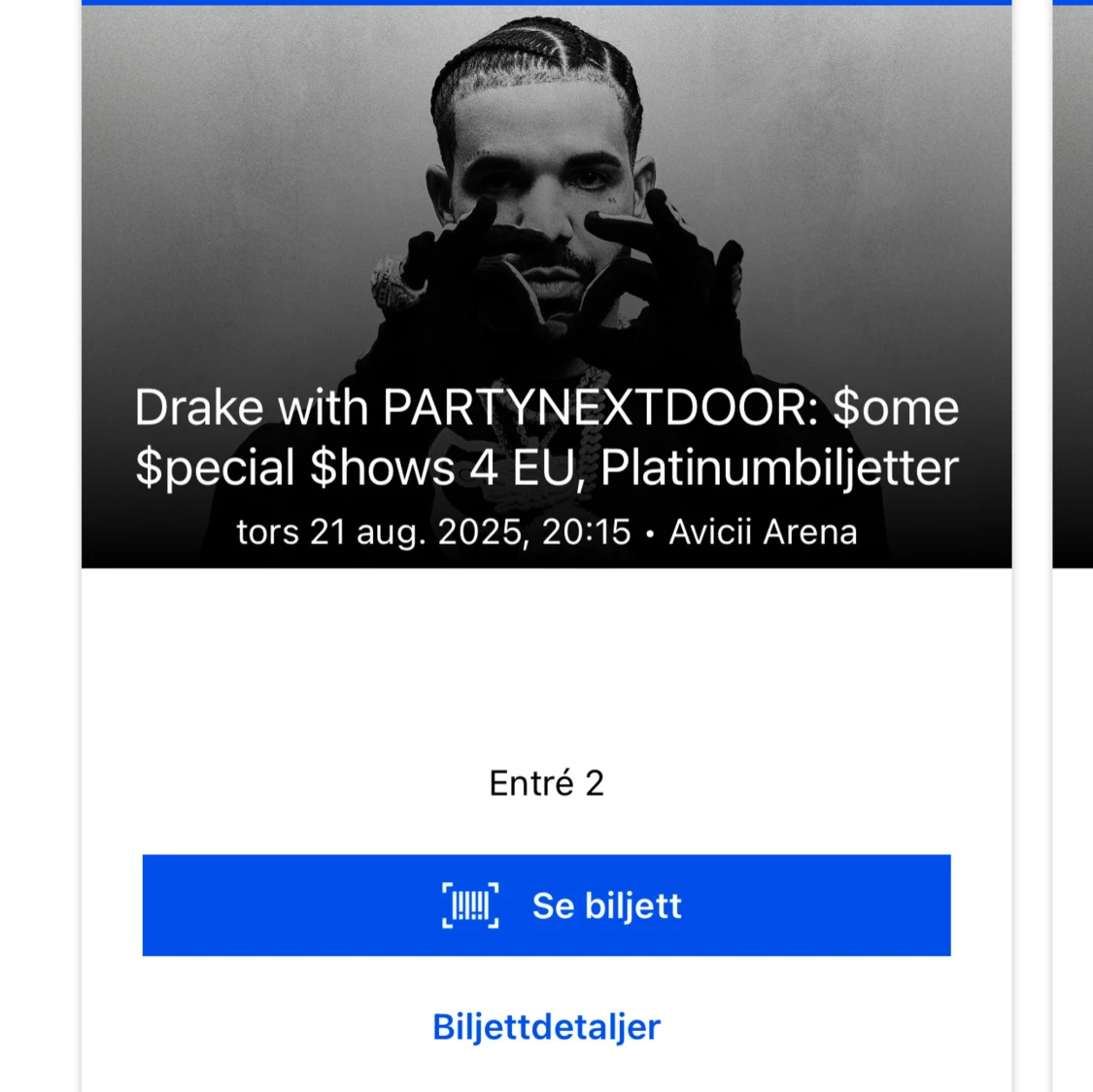 Drake och PARTYNEXTDOOR på Avicii Arena, 21 augusti 2025. 2 st Early Entry VIP Package, 2st sitt platser platinum