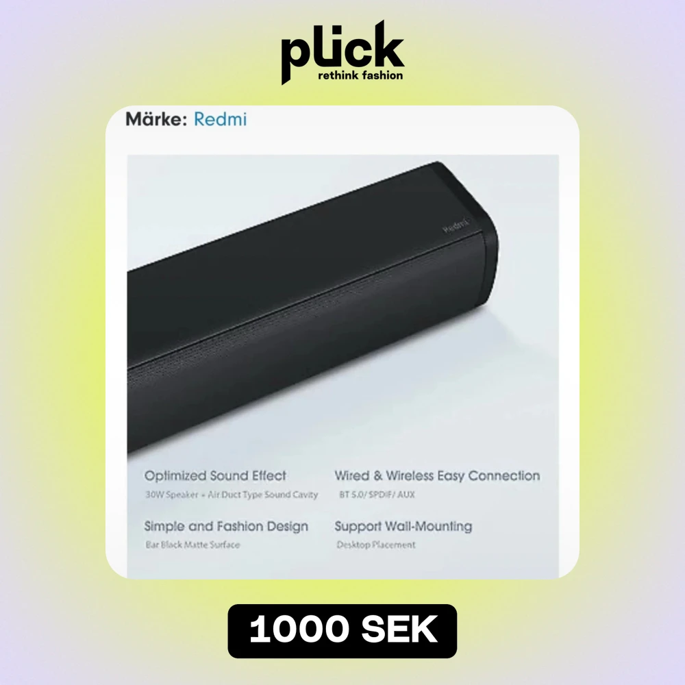 Säljer en stilren svart soundbar från Redmi med en matt yta. Den har en optimerad ljudeffekt med 30W högtalare och luftkanaldesign. Enkel anslutning med både trådbundna, SPDIF och AUX. Kan monteras på väggen eller placeras på skrivbordet. Perfekt för att förbättra ljudupplevelsen hemma!