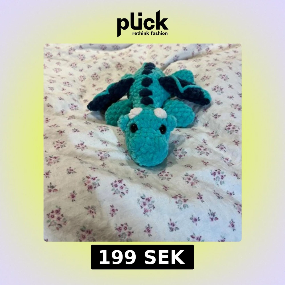 Supersöt virkad drake i färgen turkos. Precis som många av mina andra figurer innehåller dessa drakar säkerhetsögon vilket inte rekommenderas för barn under 3 år.🩵