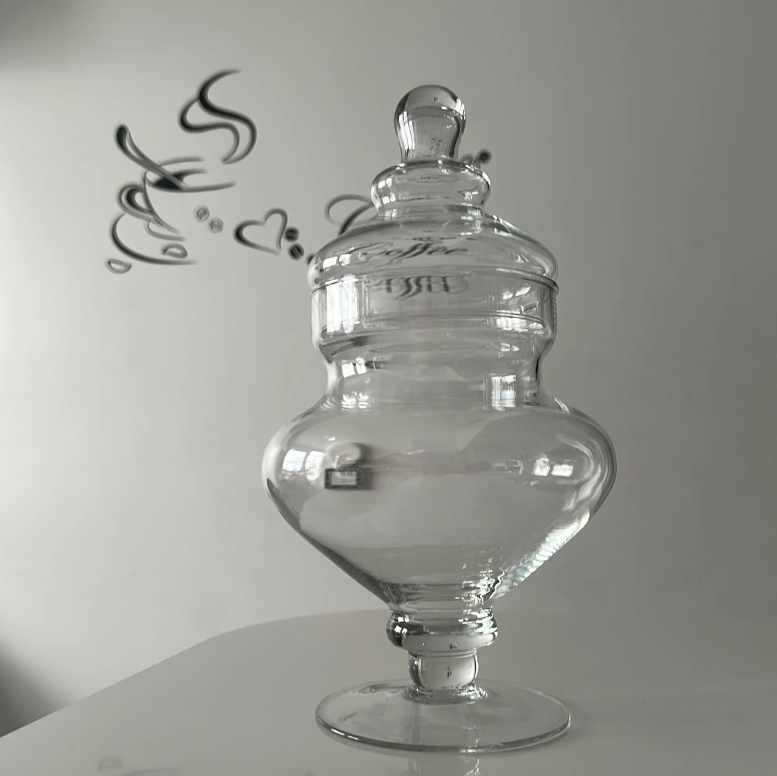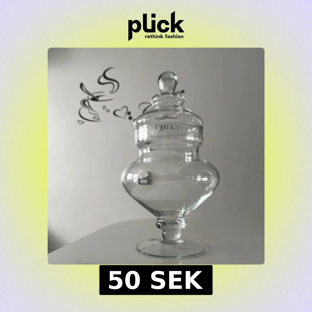 Stilren och dekorativ glasburk i transparent glas med rundad form och fot. Perfekt som inredningsdetalj eller för att förvara småsaker. Burken har ett matchande lock med knopp upptill för enkel öppning.
