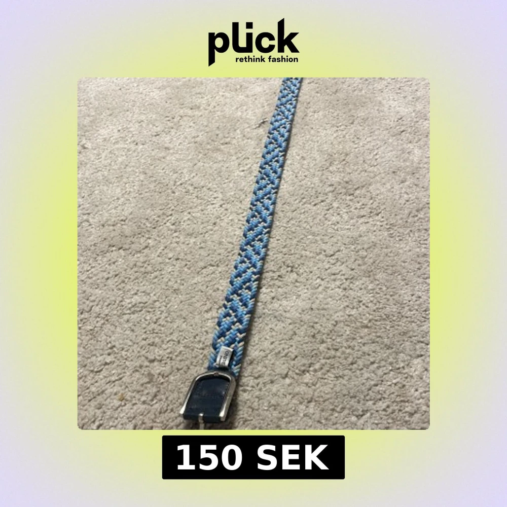 Snyggt flätat bälte från Onewear Sweden i olika blå nyanser, vitt och beige. Bältet har ett coolt mönster och detaljer i mörkblått skinn vid spännet. Perfekt accessoar för att lyfta din outfit med lite färg och stil. 70cm