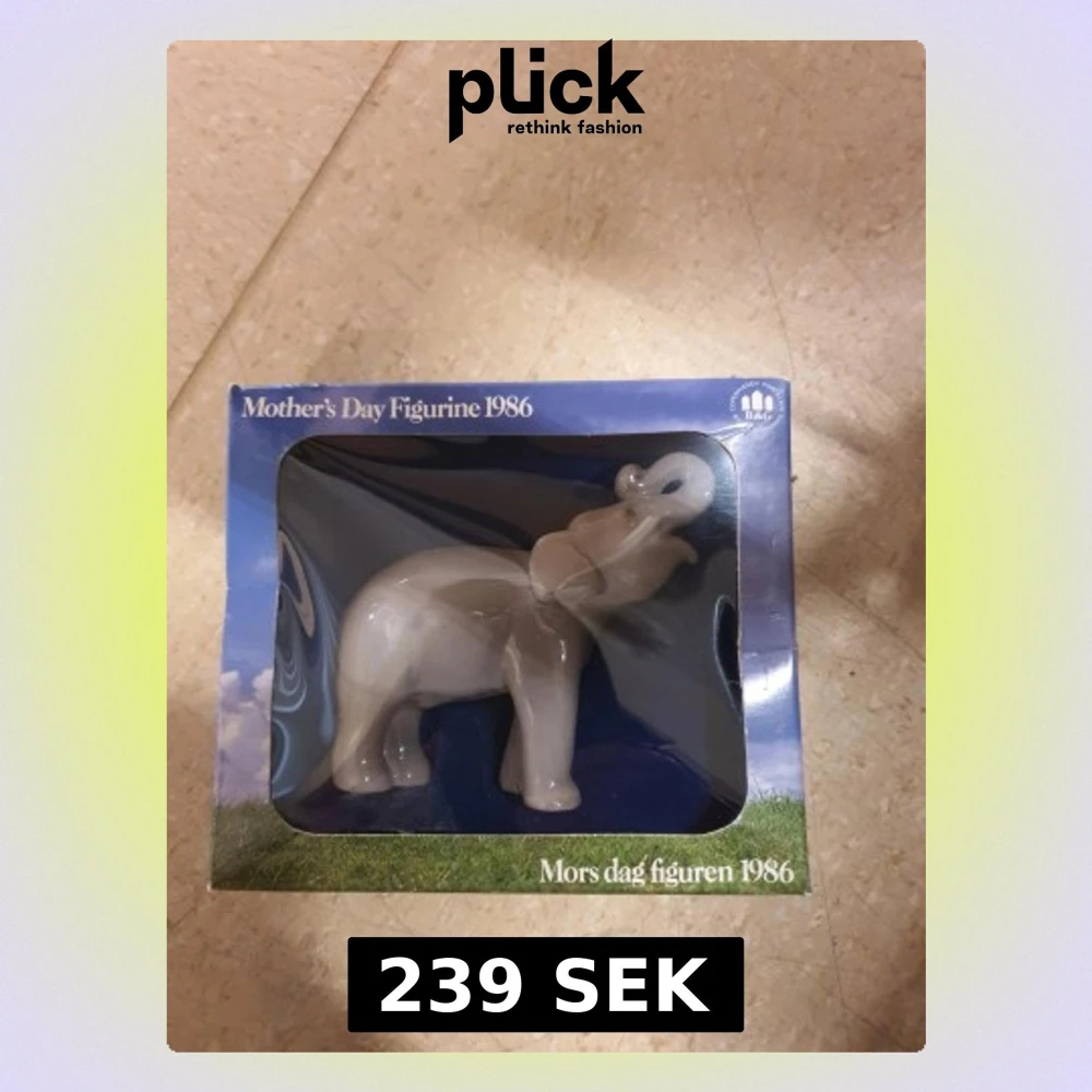 Säljer en söt elefantfigur i porslin från B&G, Mors dag 1986. Figurinens färg är ljusgrå och den kommer i originalförpackning med blå och grön design. Perfekt som samlarobjekt eller present.