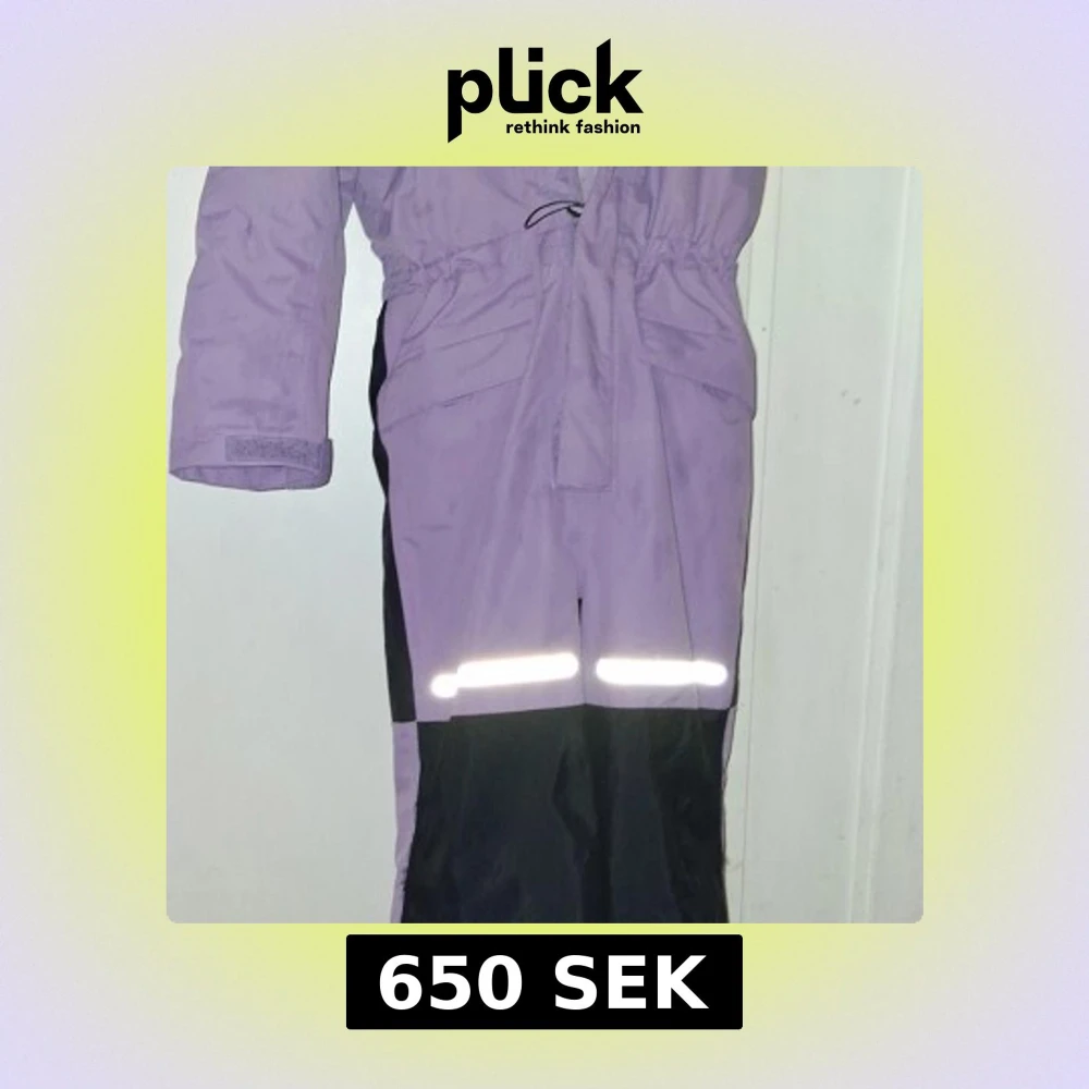 Säljer en lila och svart overall med praktiska reflexdetaljer på benen. Overallen har justerbar midja med snörning och kardborre vid ärmslut. Perfekt för kalla dagar och utomhusaktiviteter. Snygg färgkombination och funktionell design. Stl 128