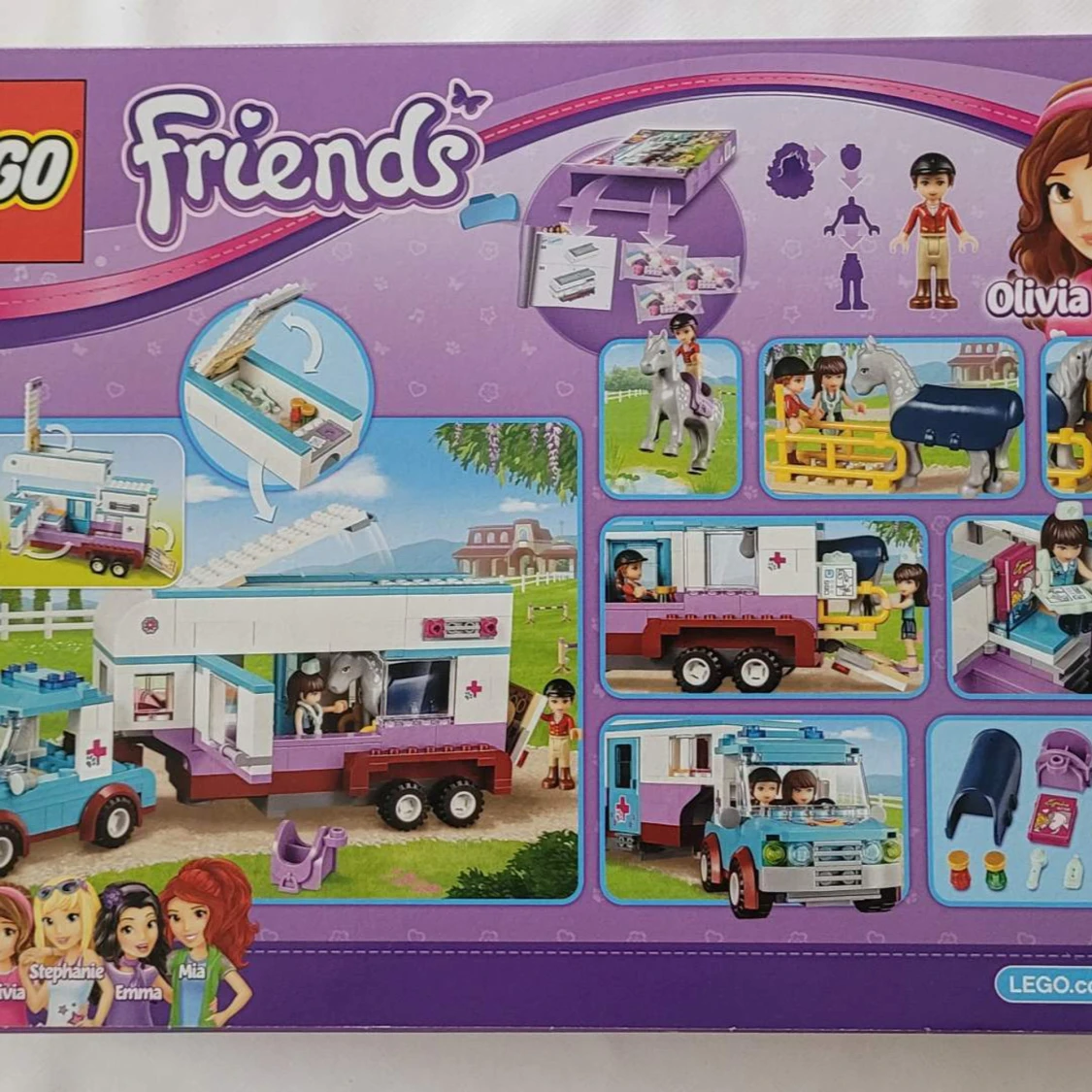 Bygg och lek med Olivia och Sophie när de tar hand om hästarna! Setet innehåller en hästtransport, bil, häst, figurer och tillbehör. Perfekt för dig som gillar djur, vänskap och kreativa äventyr. Passar unga byggare som vill skapa egna berättelser. Sättet är komplett och kommer med två instruktionsböcker samt orginal boxen. Transportbilen går och rulla och det finns massa andra roliga funktioner! Perfekt present för alla och som ger massor av nöje även efter den blivit byggt!