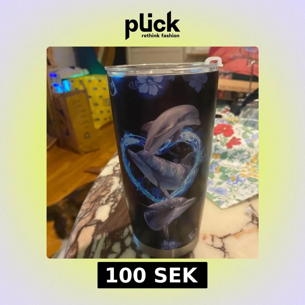 Svart termosmugg med delfinmotiv