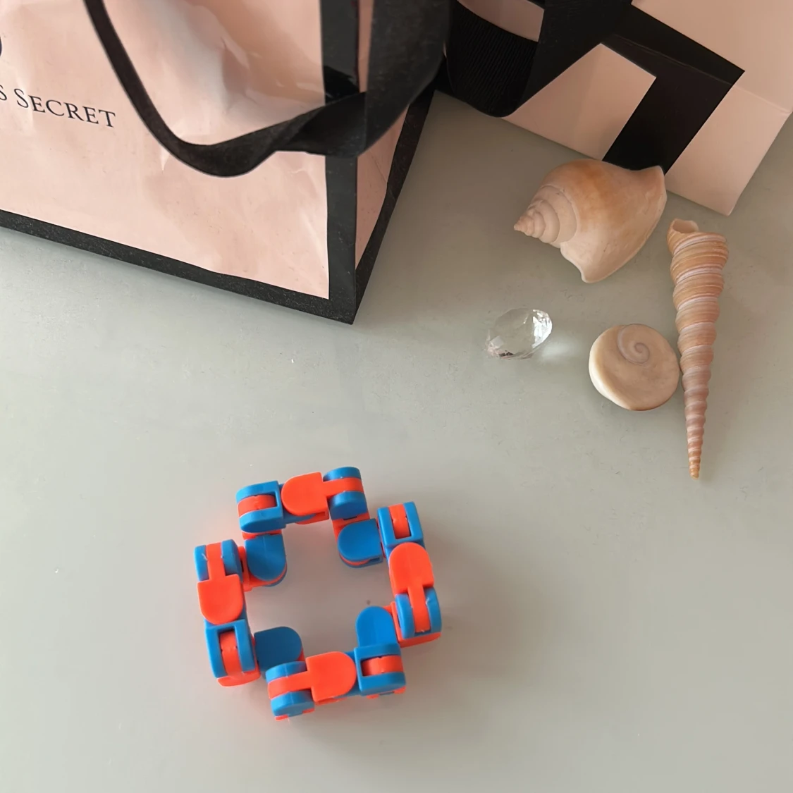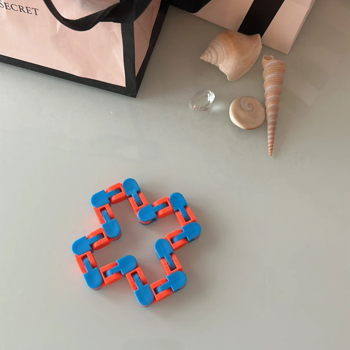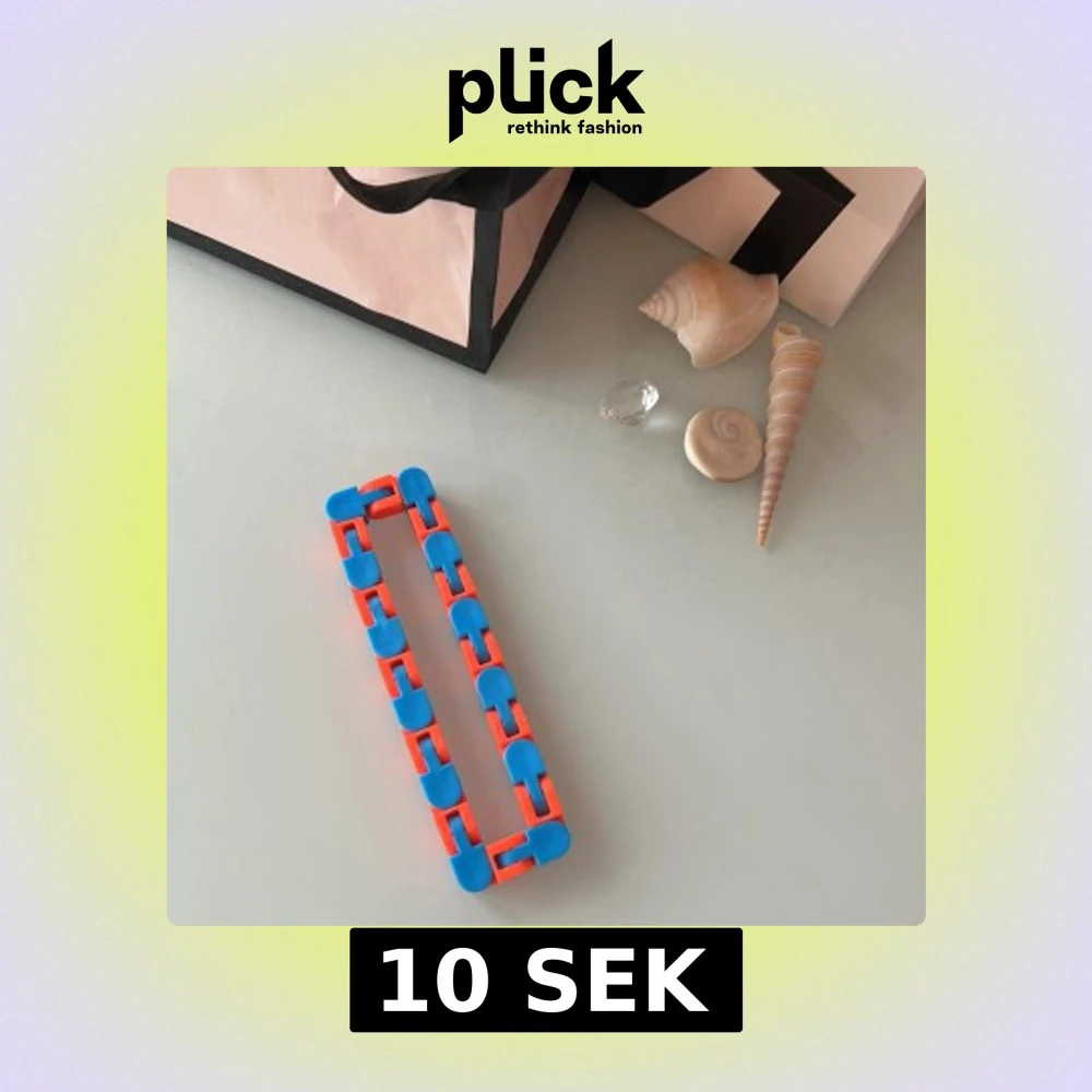 Flexibel fidget chain i blått och orange, perfekt för stresslindring och koncentration. Kan formas till olika figurer och är i mycket gott skick utan synligt slitage. Lätt att ta med och använda vid studier eller arbete.
