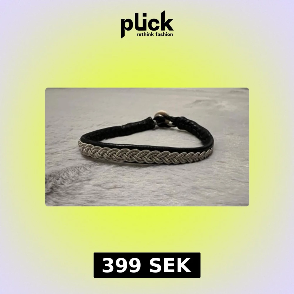 Säljer ett helt nytt tenntrådsarmband, det är gjort ut av äkta läder och tenntråd, aldrig använts. Orginal förpackningen kommer med köpet Den har längden 18.5 cm och och bredden 0.5 cm den har läder runt om hela armbandet sedan flätad mönster ut av tenntråd på toppen och avslutningsvis en knapp som man trär in i snöret för att första fast armbandet. Det köptes för 700kr på Stockholms Julmarknad 2024! Skriv i dm för mer info!