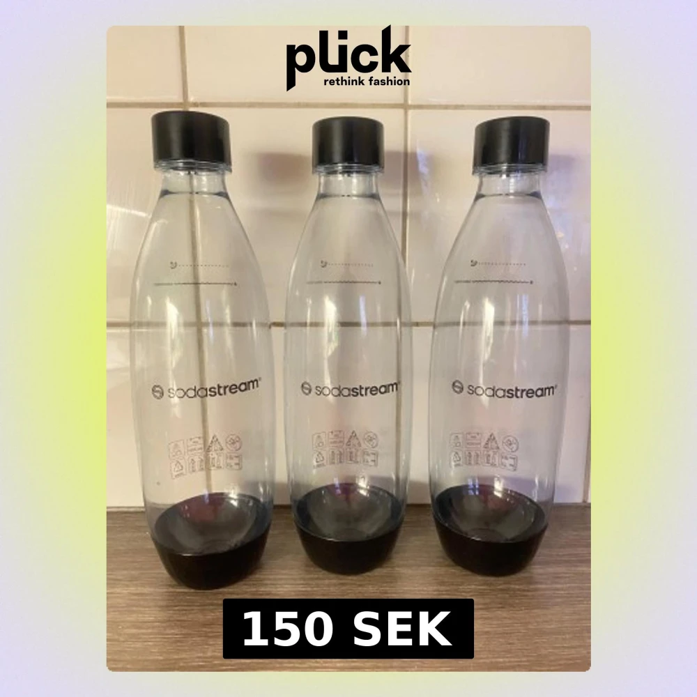 Tre stycken oanvända SodaStream-flaskor i plast med svart lock, varje flaska rymmer 0.85L. Säljes då vi insåg att dom inte passar maskinen vi köpte.