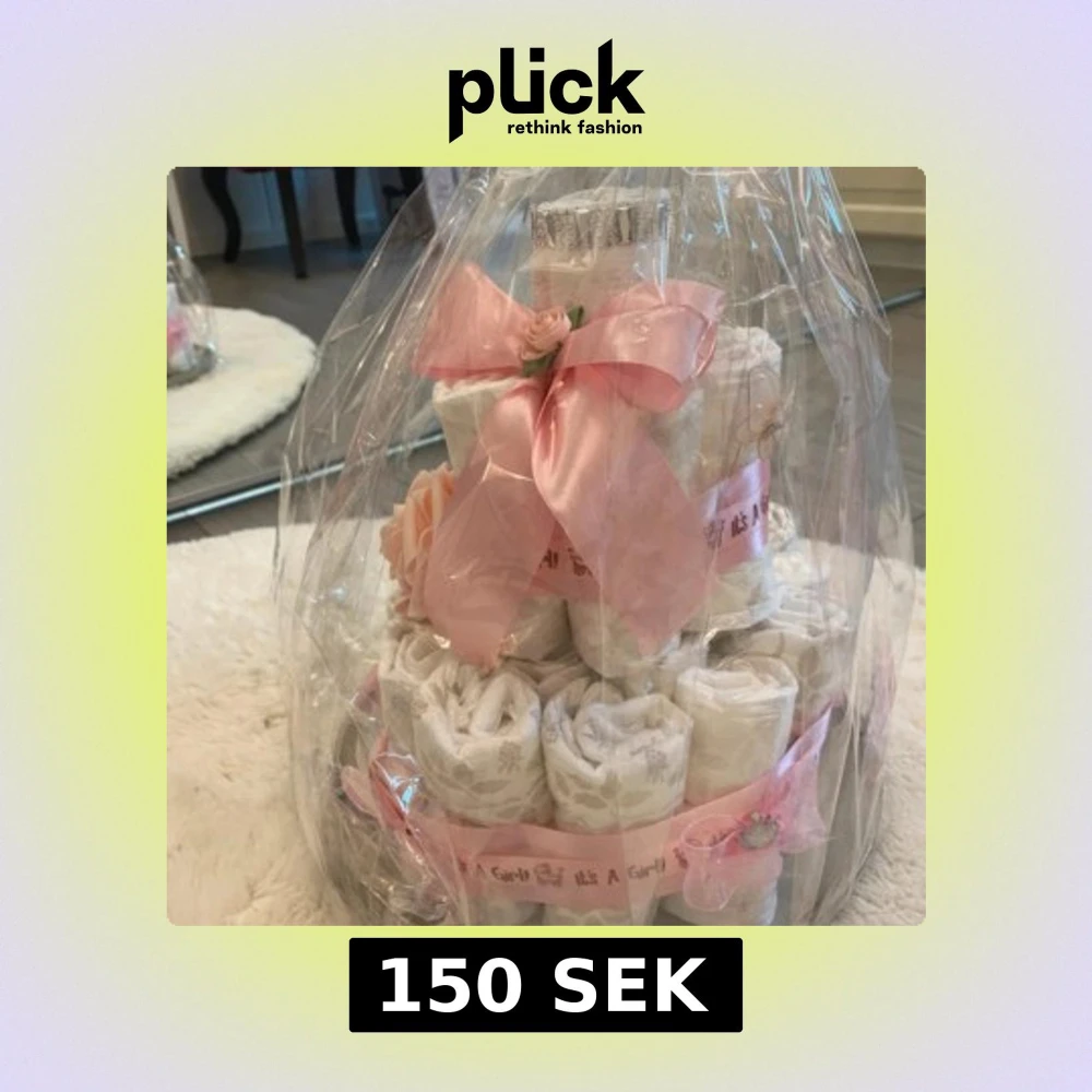 Fint dekorerad blöjtårta. Jag har använt libero storlek 1 och 2. Passar perfekt som present till nyfödd bebis eller babyshower present.