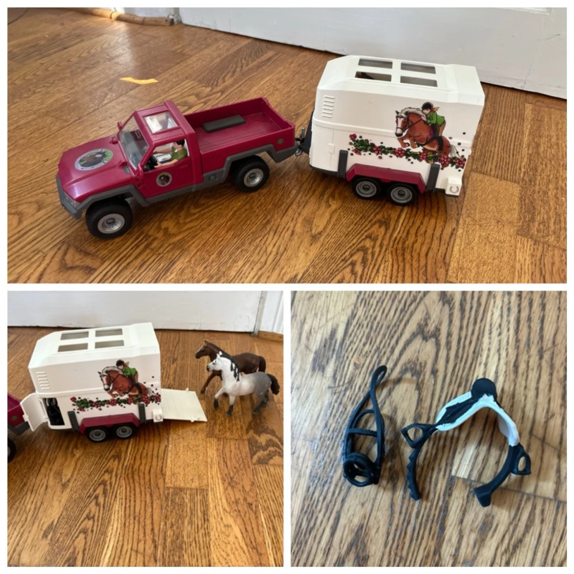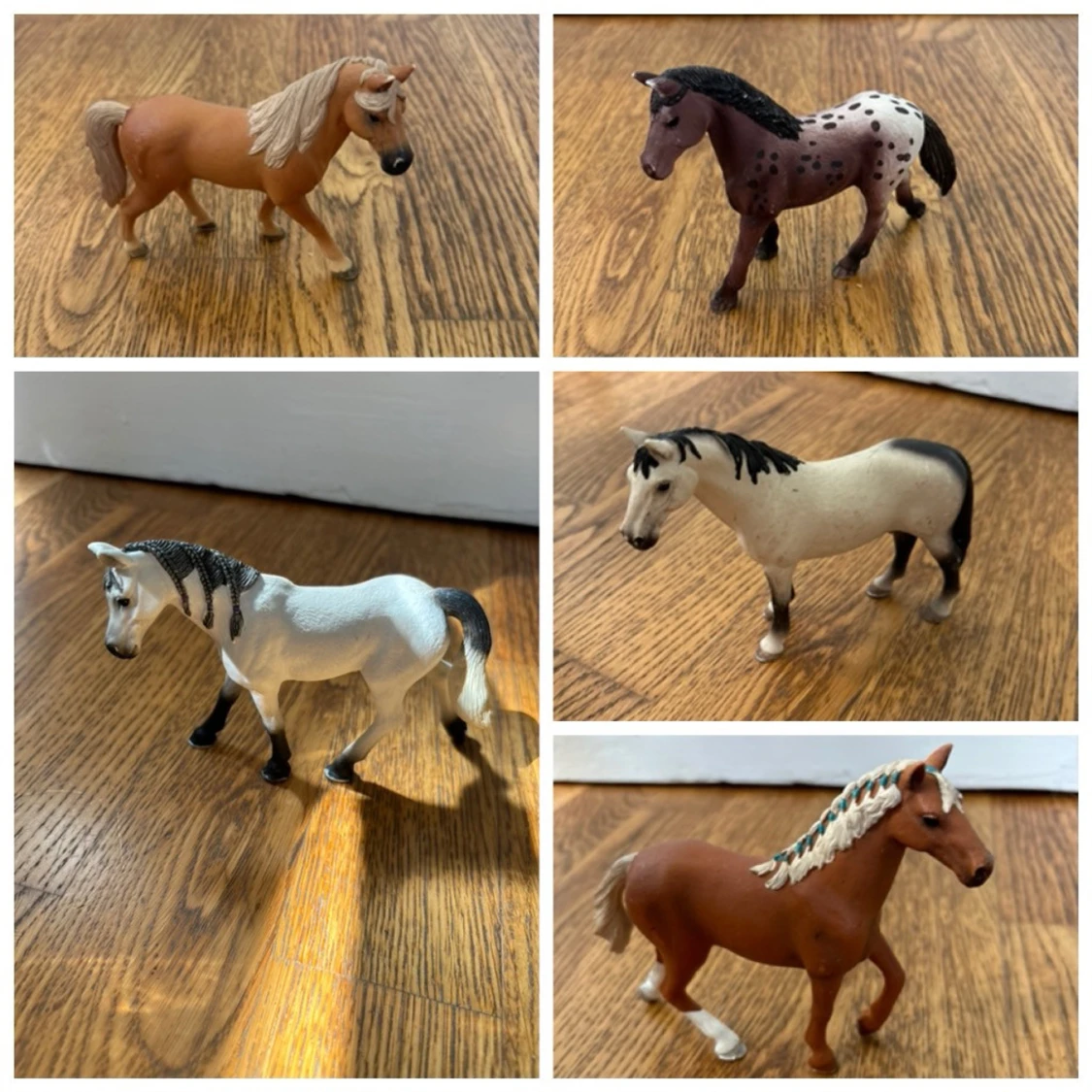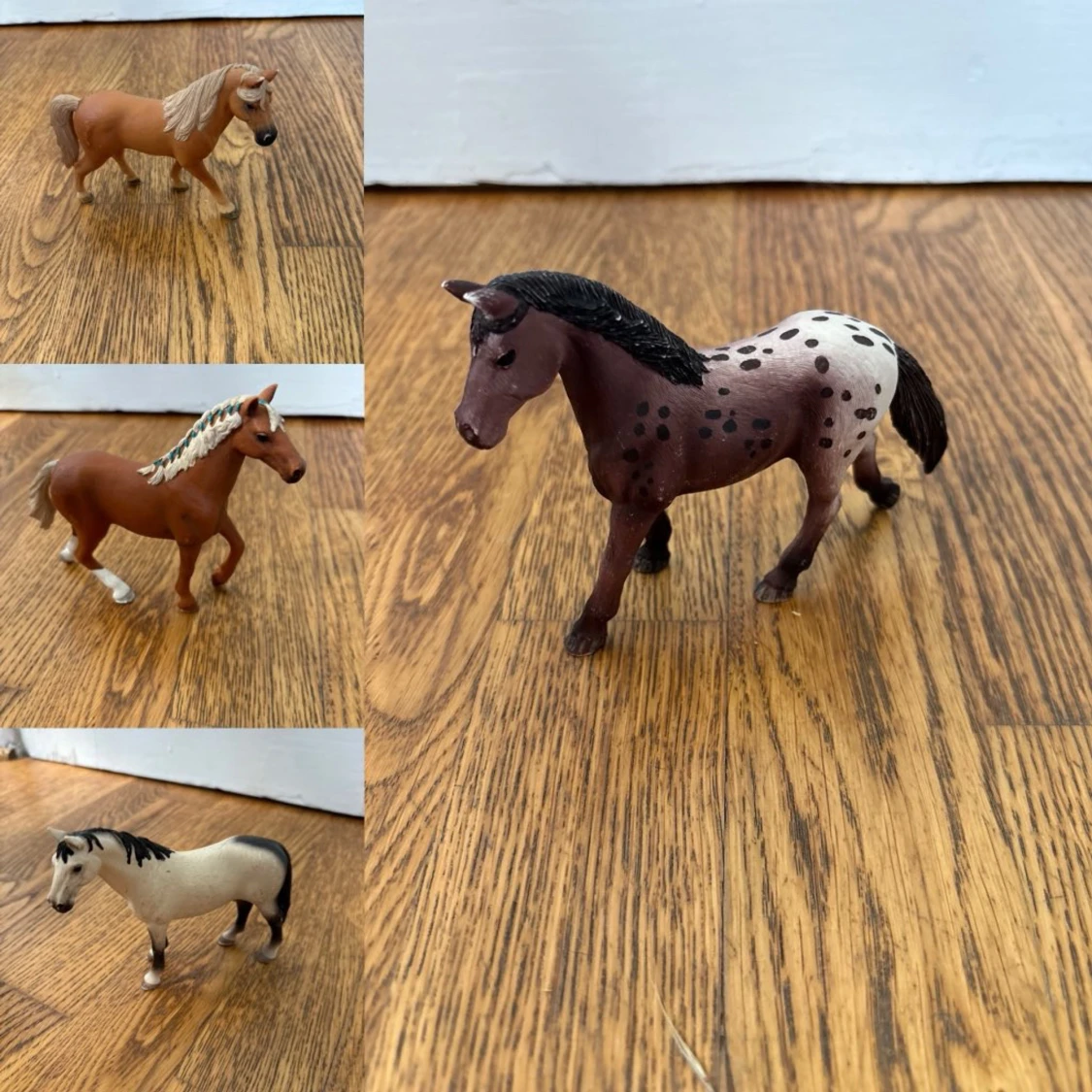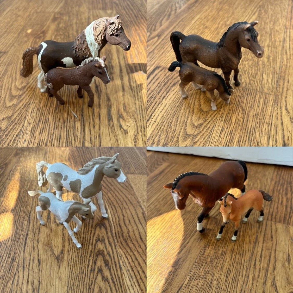 Säljer mina gamla schleich saker då jag inte har ngt bruk av dem längre. Ingenting är sönder och allt är i bra skick. Hästar ( ensam ): 50 kr/st. Hästtransport m hästar: 250kr. Djurhage ( mörk ): 175kr. Djurhage ( ljus ): 150kr. Häst m föl: 75kr/st