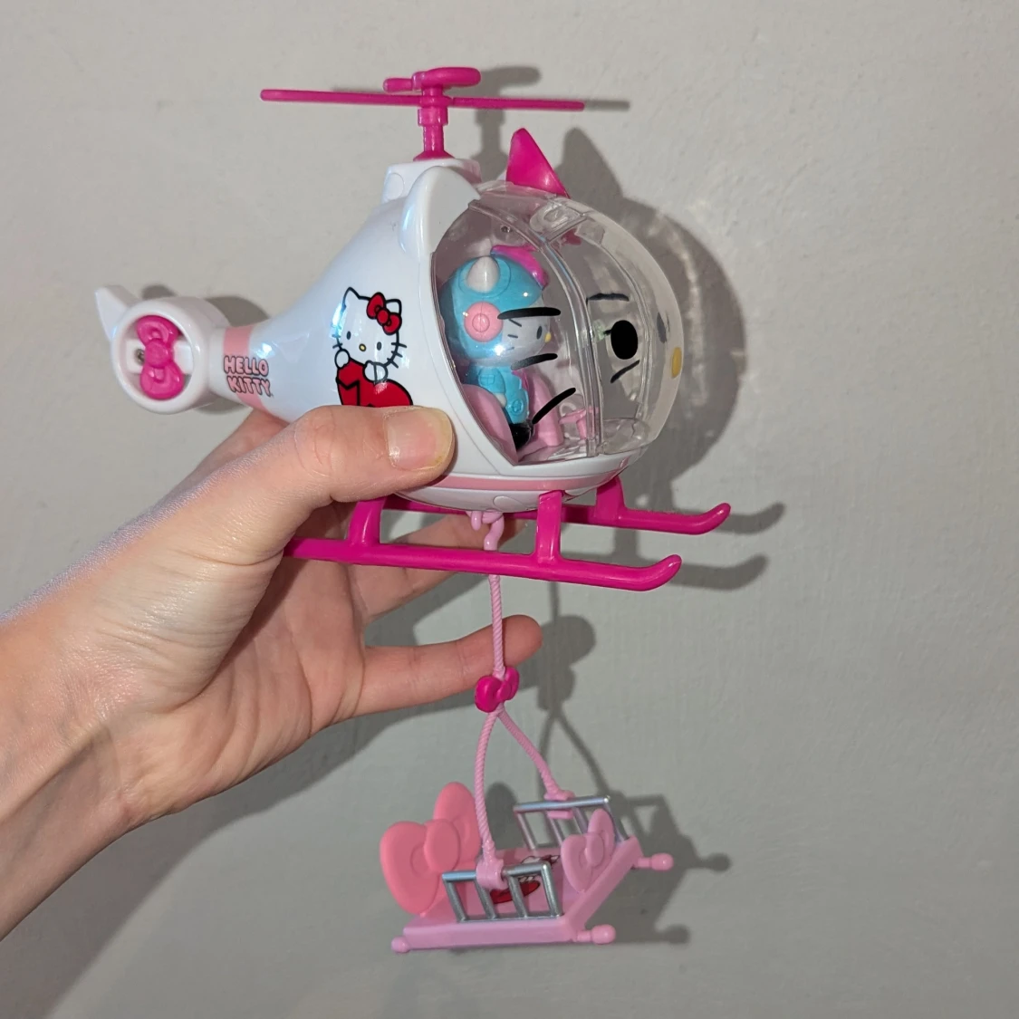 Helikopter från sanrio med transport säng och hello Kitty figur