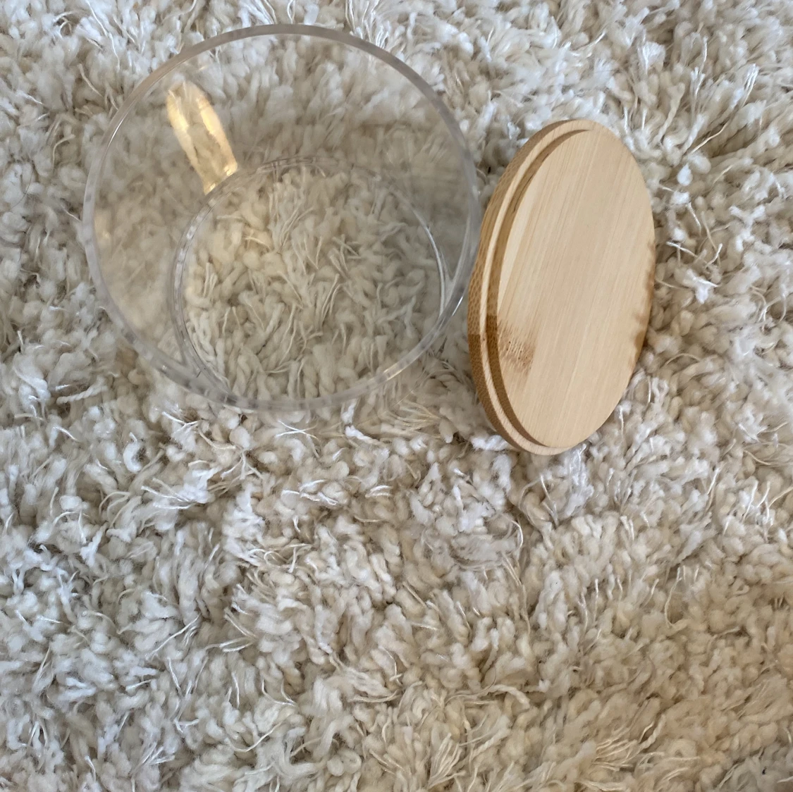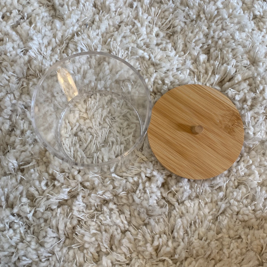 Plastburk med trällock Kan användas till cotton pads, Tops och annat