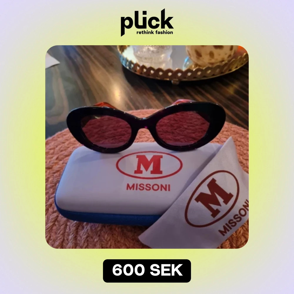 Missoni solglasögon med coola skalmar i avvikande färg och Missoni loggan diskret i glitterfärg. Linsbredd: 52 mm Bryggbredd: 21 mm Märke:M Missoni Material båge: Acetat Skick: inget att anmärka på, finns både fodral och putsduk med.