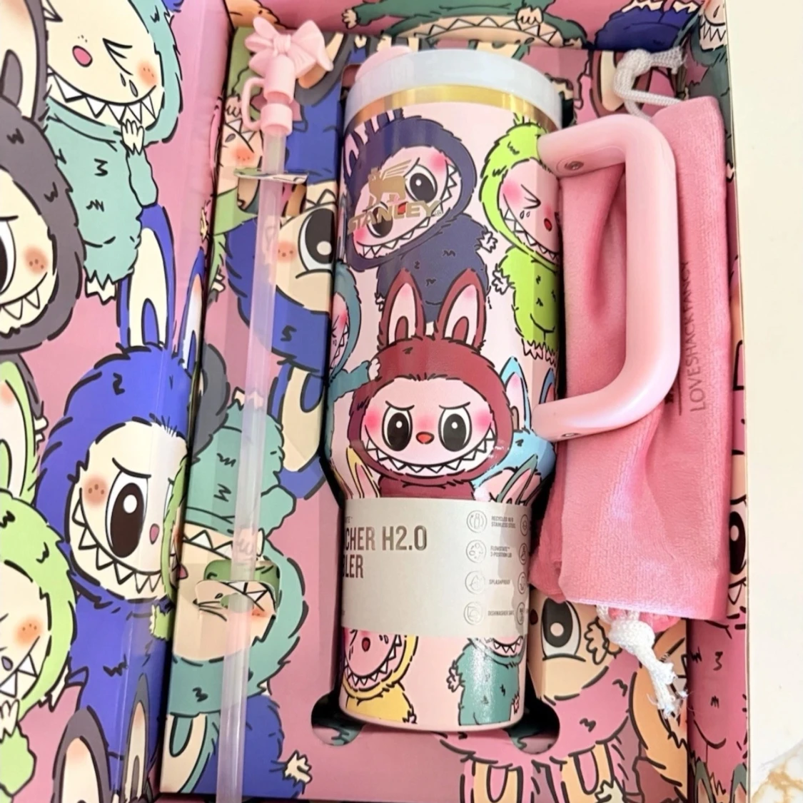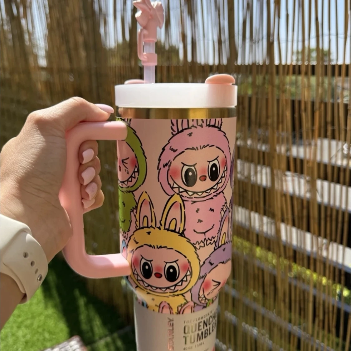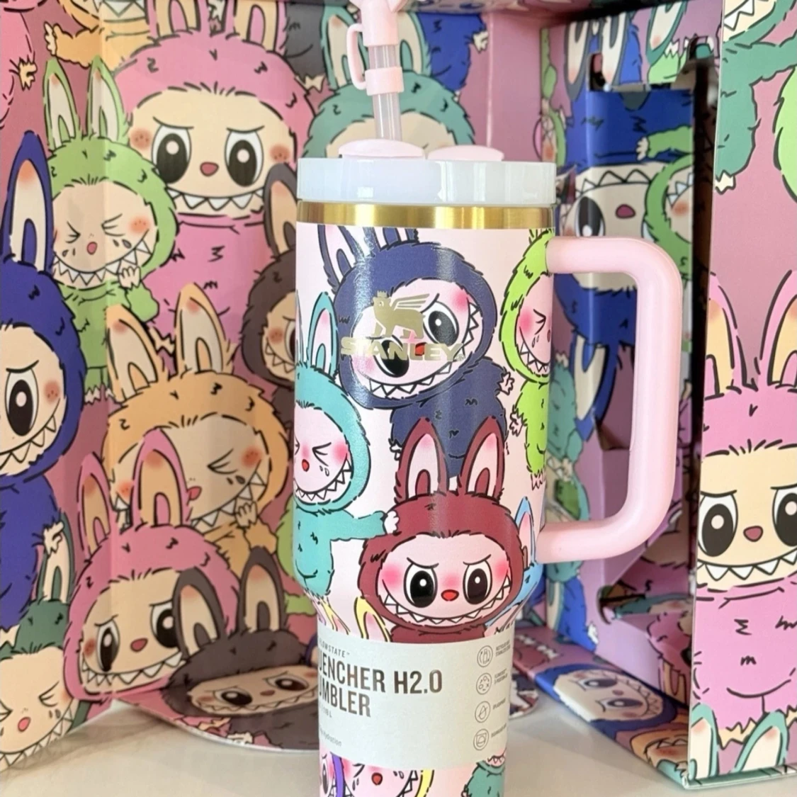 Stanley Quencher H2.0 Tumbler i limiterad utgåva med färgglad, lekfull design. Rymmer 1,18L, har rosa handtag och medföljande sugrör. Perfekt skick, levereras i originalförpackning. Håller drycker kalla länge och är BPA-fri.