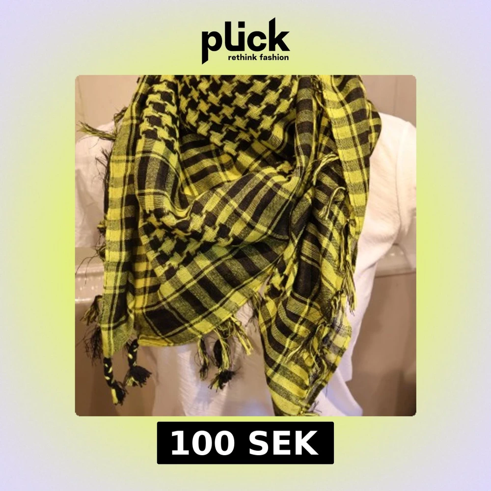 Säljer en snygg gul och svart halsduk med rutigt och traditionellt mönster. Halsduken har fransar längs kanterna och är perfekt för att ge din outfit lite edge. Passar dig som gillar att sticka ut med färg och mönster.