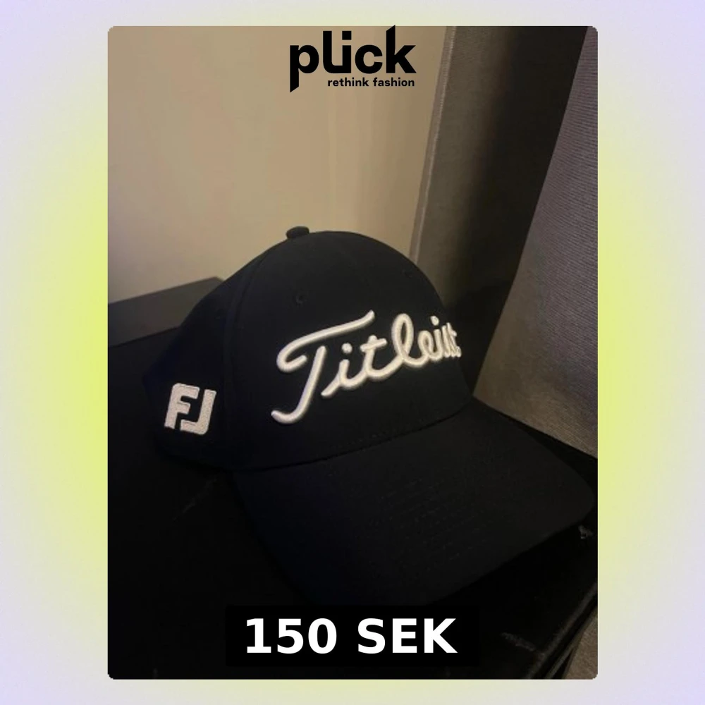 Snygg svart keps från Titleist med vit broderad logga framtill och detaljer som FJ och Pro V1 på sidorna. Insidan har svarta band med Titleist-tryck och texten Tour Performance. Justerbar baktill med röd söm. Perfekt för golfbanan eller chill vardagsstil.