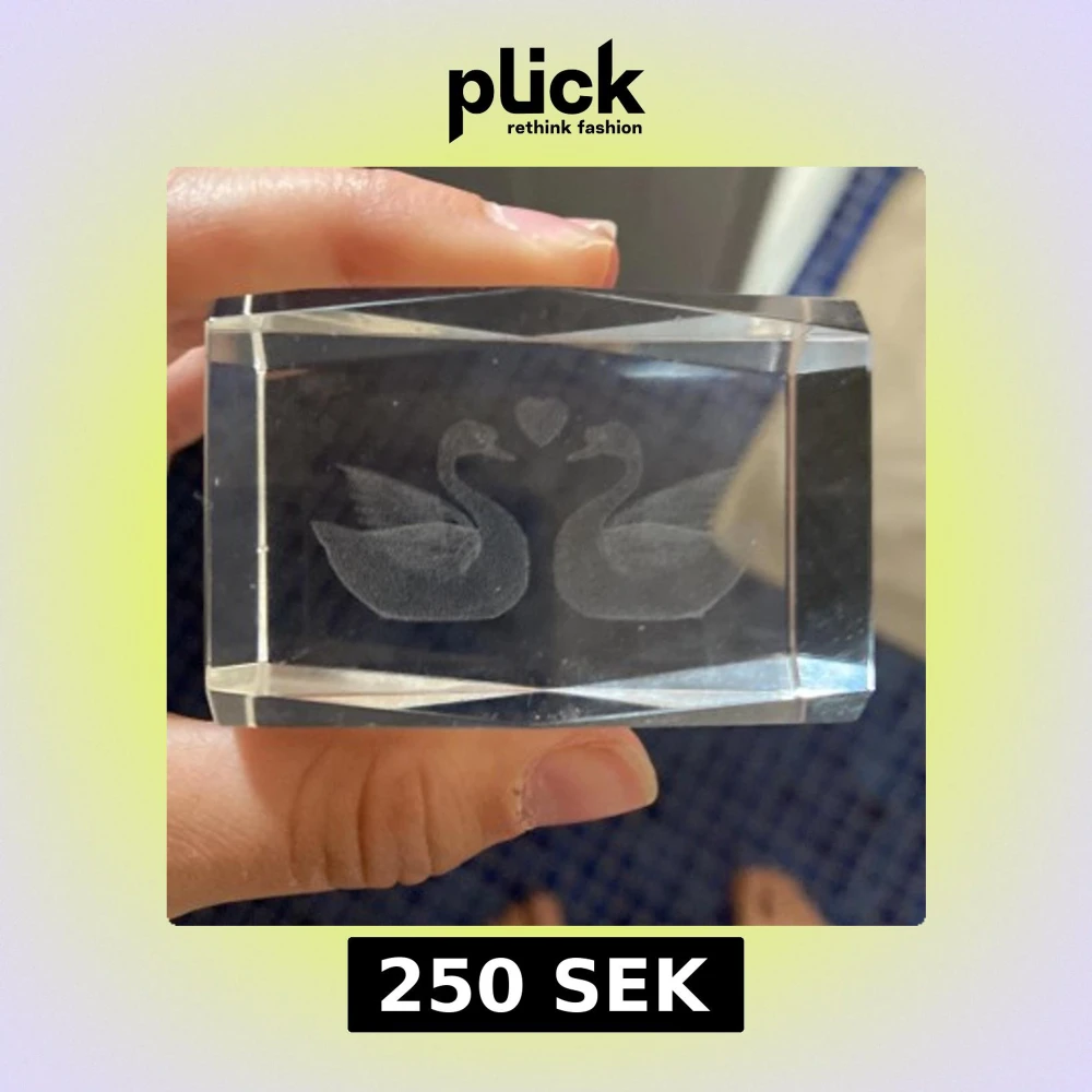 En glasprydnad med två svanar inuti som bildar en hjärta en mycket fin sak att ha i rummet. Den är i mycket fin form. Pris kan diskuteras!!!