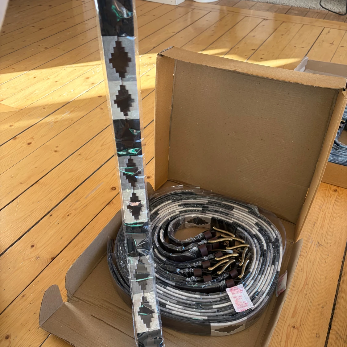 Helt nya skärp för endast 349 kr, de är 1 one size. Handgjorda med mjukt högkvalitets läder med brodering i svart och vitt-grått. Gör så att din outfit sticker ut mer med Nordfors bälten!