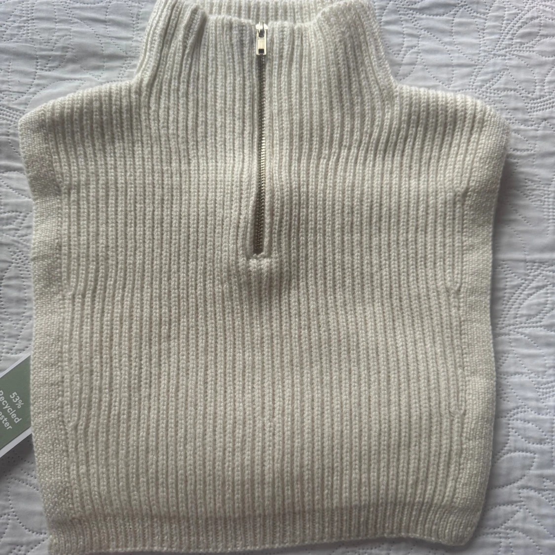 Ribbstickad beige krage med hög hals och half zip-dragkedja framtill. Perfekt att slänga över en tröja för extra värme och stil. Tillverkad i en mjuk mix av polyester, akryl och polyamid. Enkel och clean design som passar till allt.