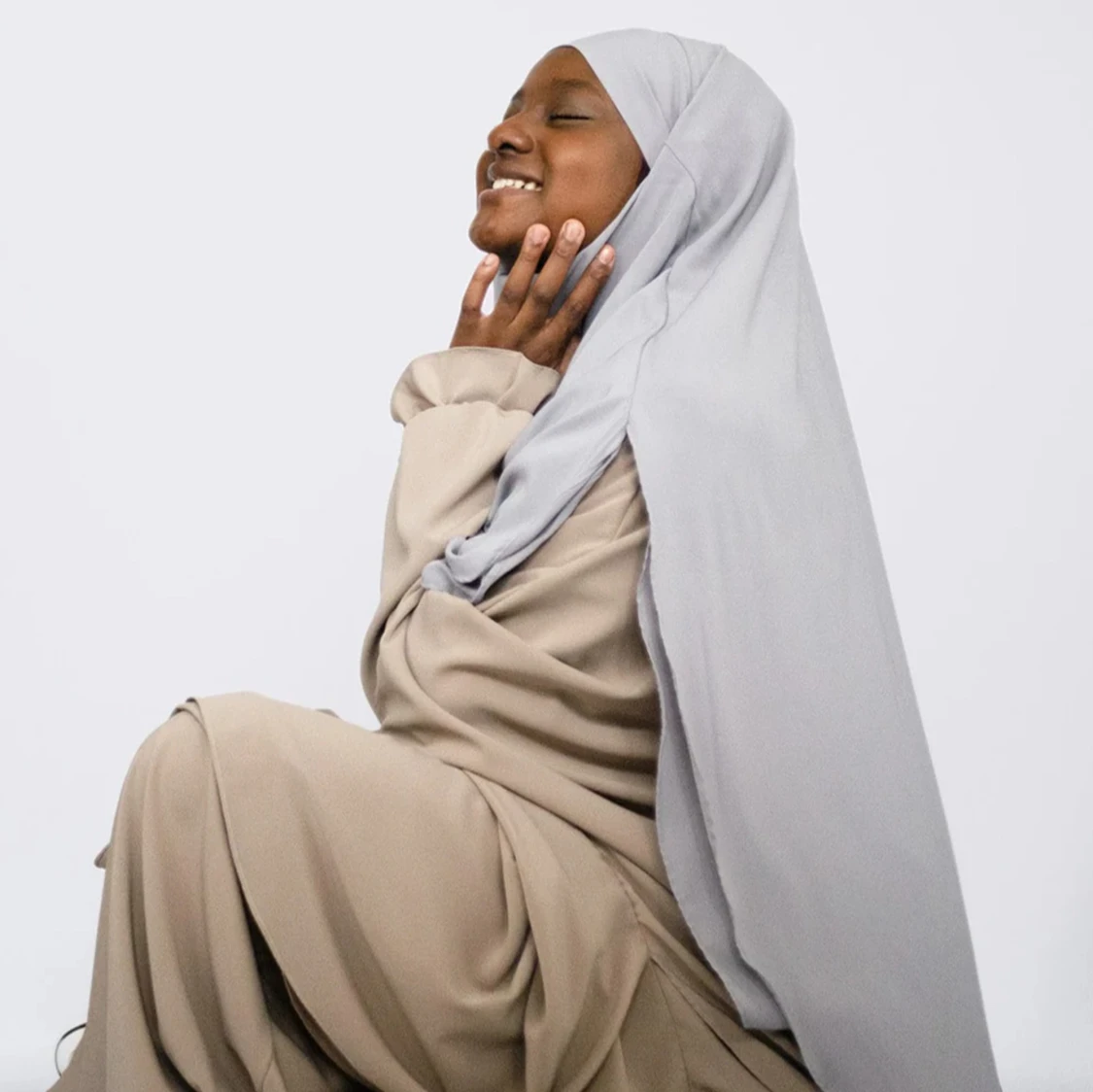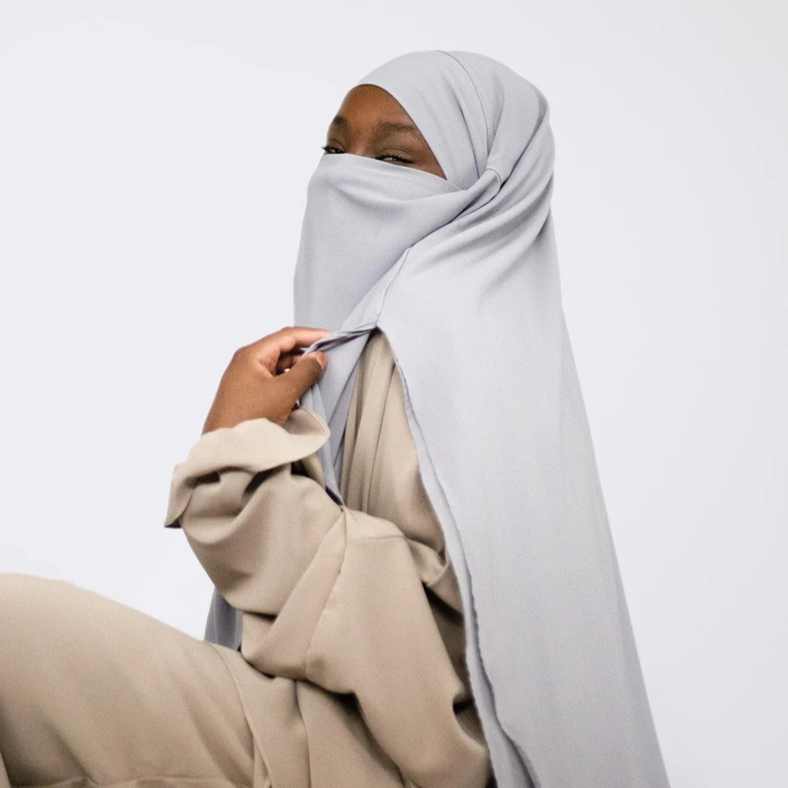 Helt ny khimar som aldrig kom till användning. Från LesSultanas i färgen ”moonlight” i 2 lager premium chiffong som är jätte skön och stretchig samt helt ogenomskinlig💖