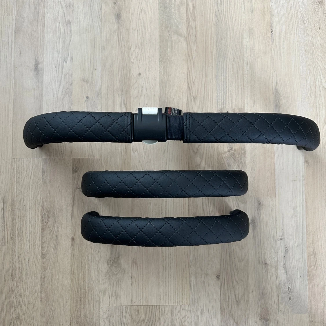 Nysydda skydd till handtag samt 2 stycken byglar. Dessa passar till Bugaboo Donkey 1 och 2. Dessa träs på över original handtag o byglar, för att dölja/skydda. För att få på dessa behöver man lossa handtaget, om du behöver hjälp med det är det bara skriva, det är superenkelt. Därefter sitter dessa ordentligt på plats utan att skava eller åka av. Svart quiltad läderimitation.