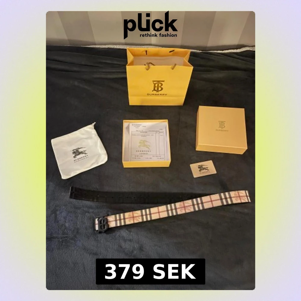 Hej😊 säljer ett nytt burberry bälte i längd 115cm. Den kommer även med hålslagare för att göra hål för bättre passform👍 skriv gärna om ni har funderingar!